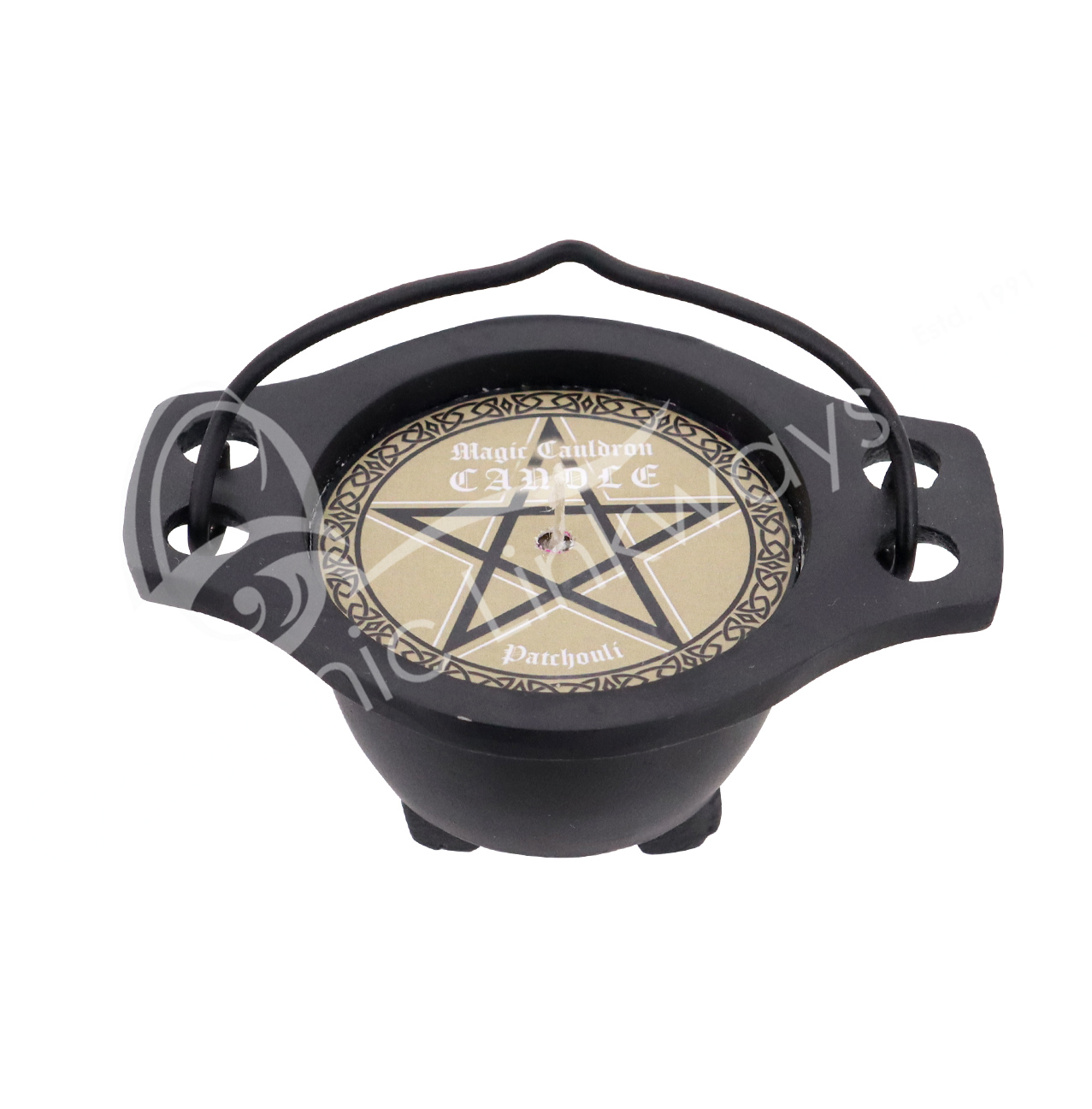 CANDLE – CAULDRON WITH PATCHOULI BEIGE WAX 4″L X 2″H X 3″W