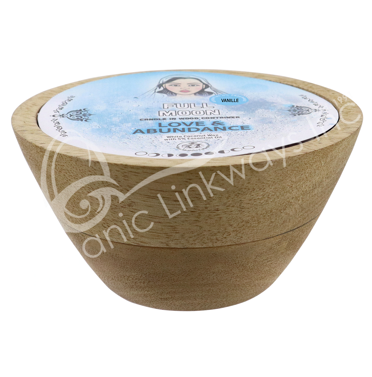 CANDLE – WOOD FULL MOON VANILLA LOVE & ABUNDANCE 5″DIA. X 2.5″H