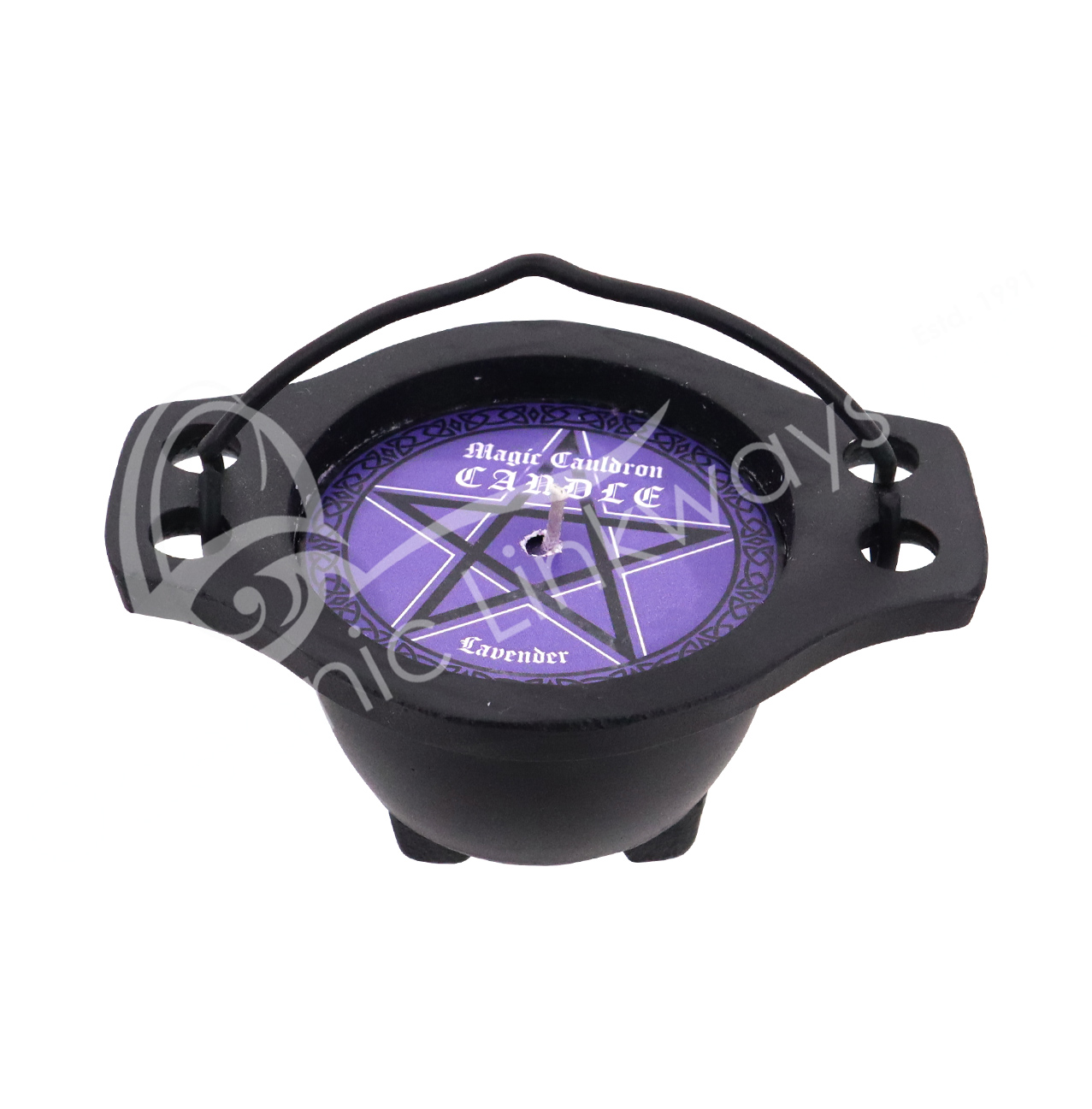 CANDLE – CAULDRON WITH LAVENDER PURPLE WAX 4″L X 2″H X 3″W