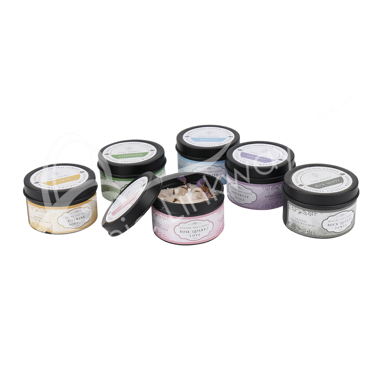 CANDLE – SOY WAX WITH MIXED STONES IN POP-UP DISPLAY (SET OF 18) 9.65 X 9.65″