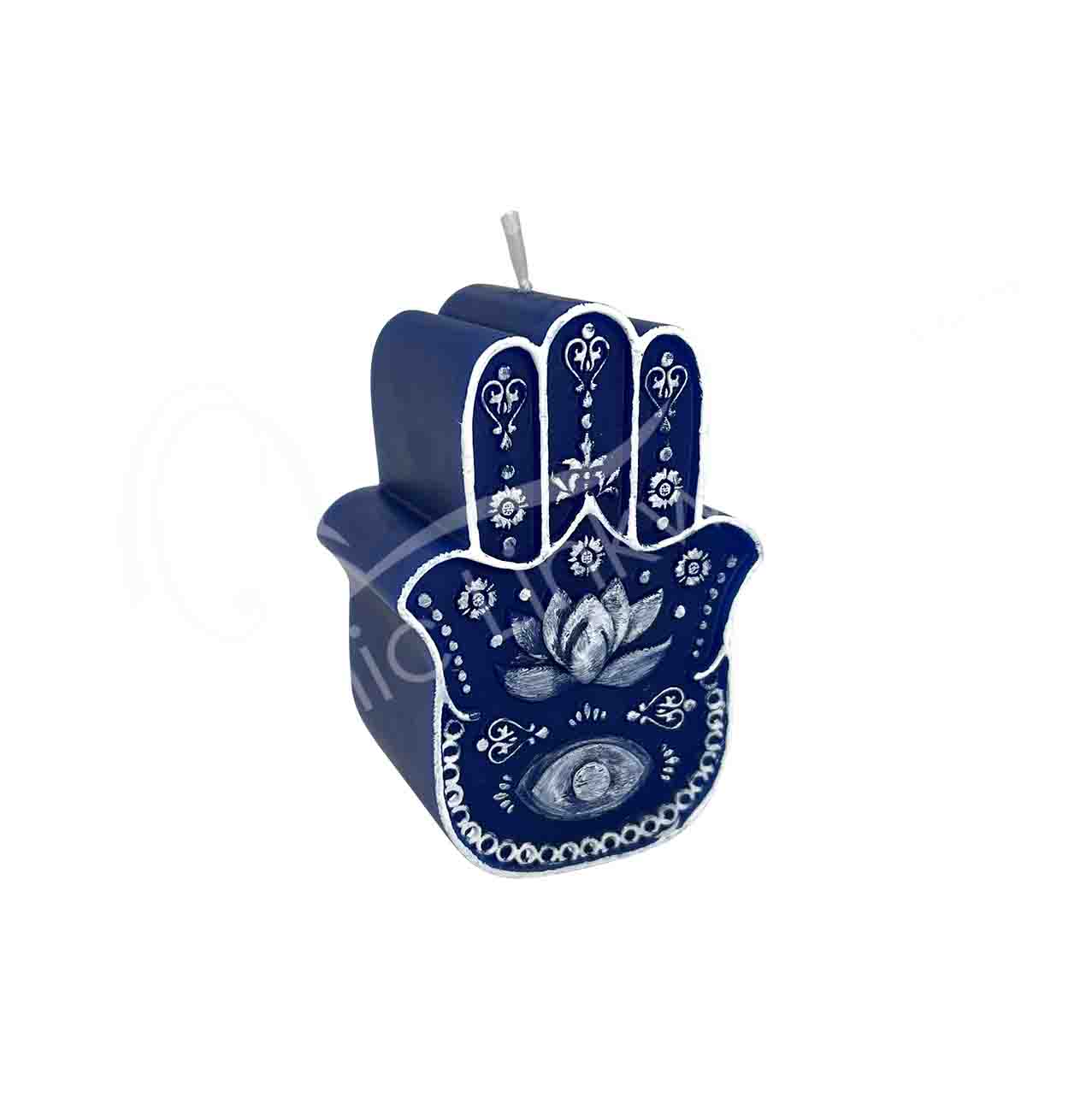CANDLE – HAND OF FATIMA, BLUE 2.65″L X 3.9″H