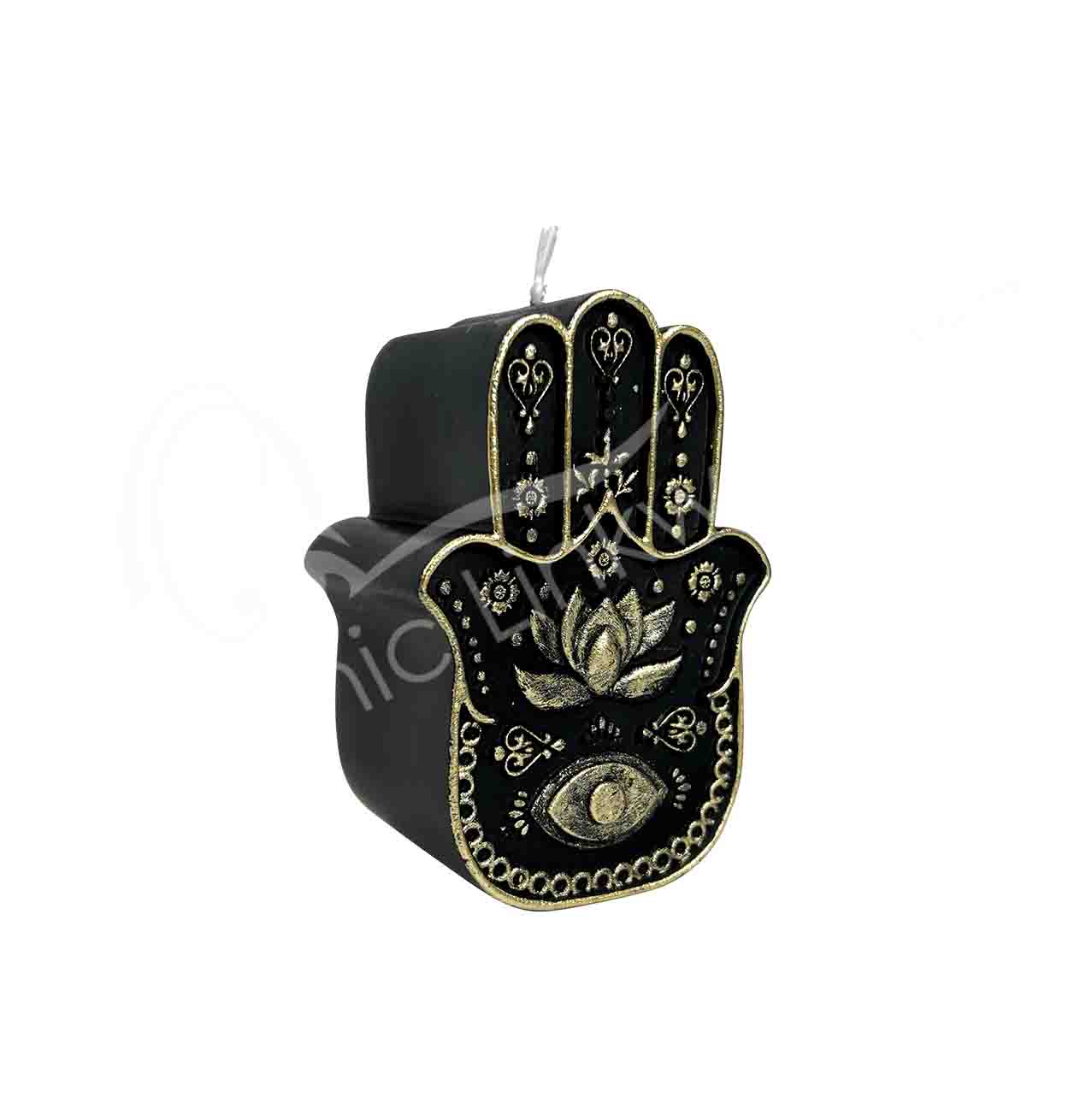CANDLE – HAND OF FATIMA, BLACK 2.65″L X 3.9″H