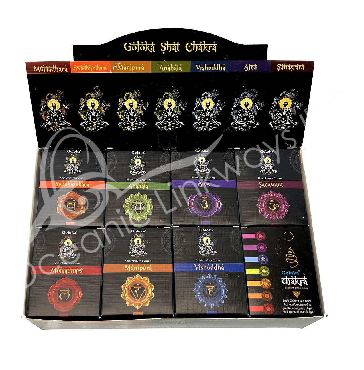 INCENSE – CHAKRA CONES STARTER KIT DISPLAY (SET OF 24) 9.5″W X 7″H