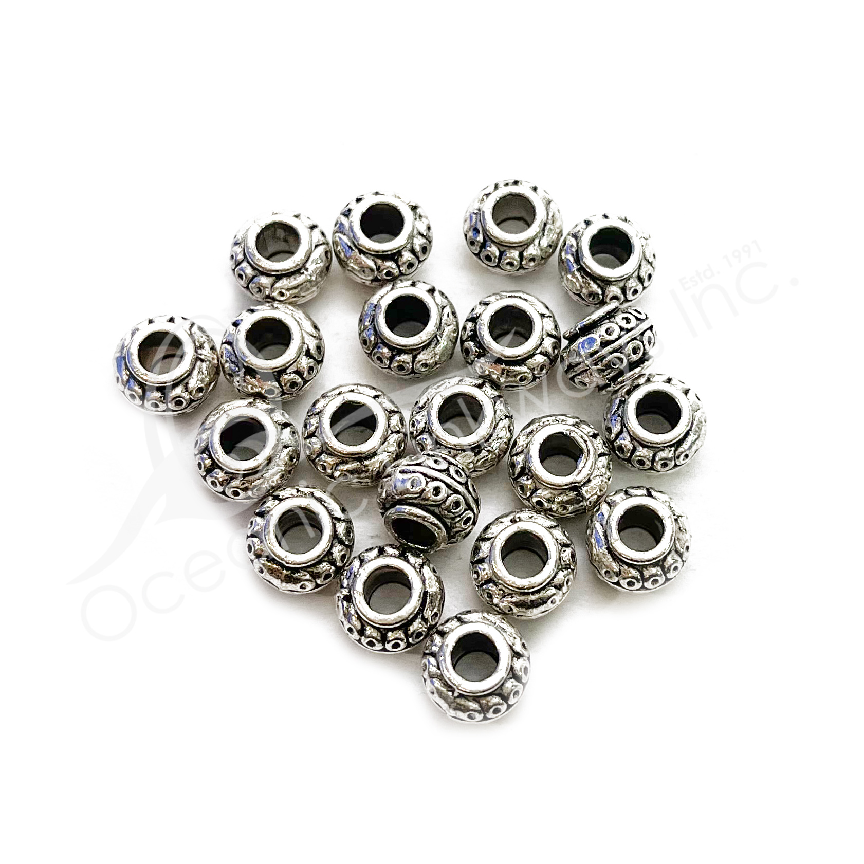 (CLOSE OUT) BEADS – METAL FLAT ROUNDED EMBOSSED (PK 100) 1 CM W X 3 MM T