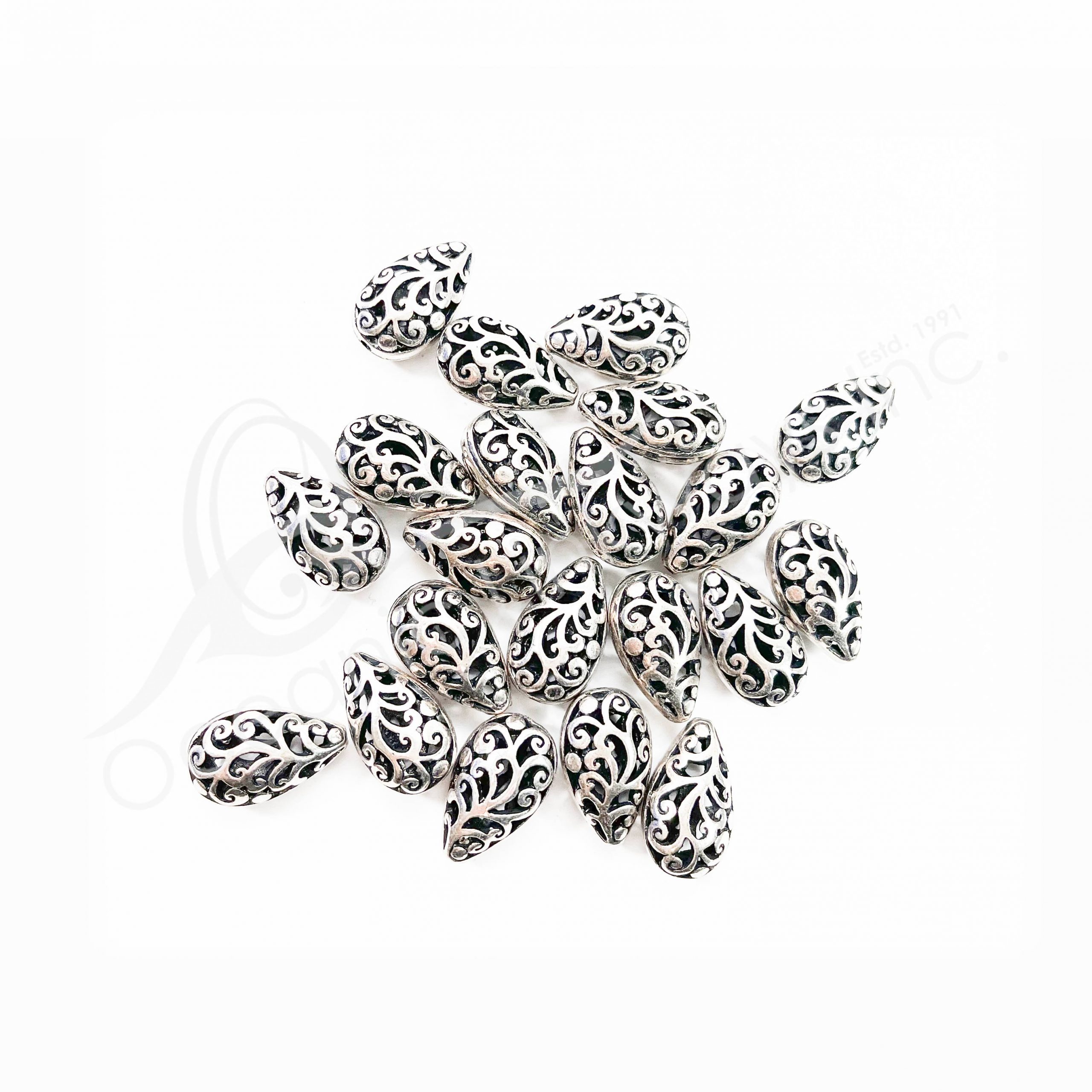 (CLOSE OUT) BEADS – METAL TEARDROP WITH SPIRALS OPENINGS (PK 20) 18 MM L X 6 MM T