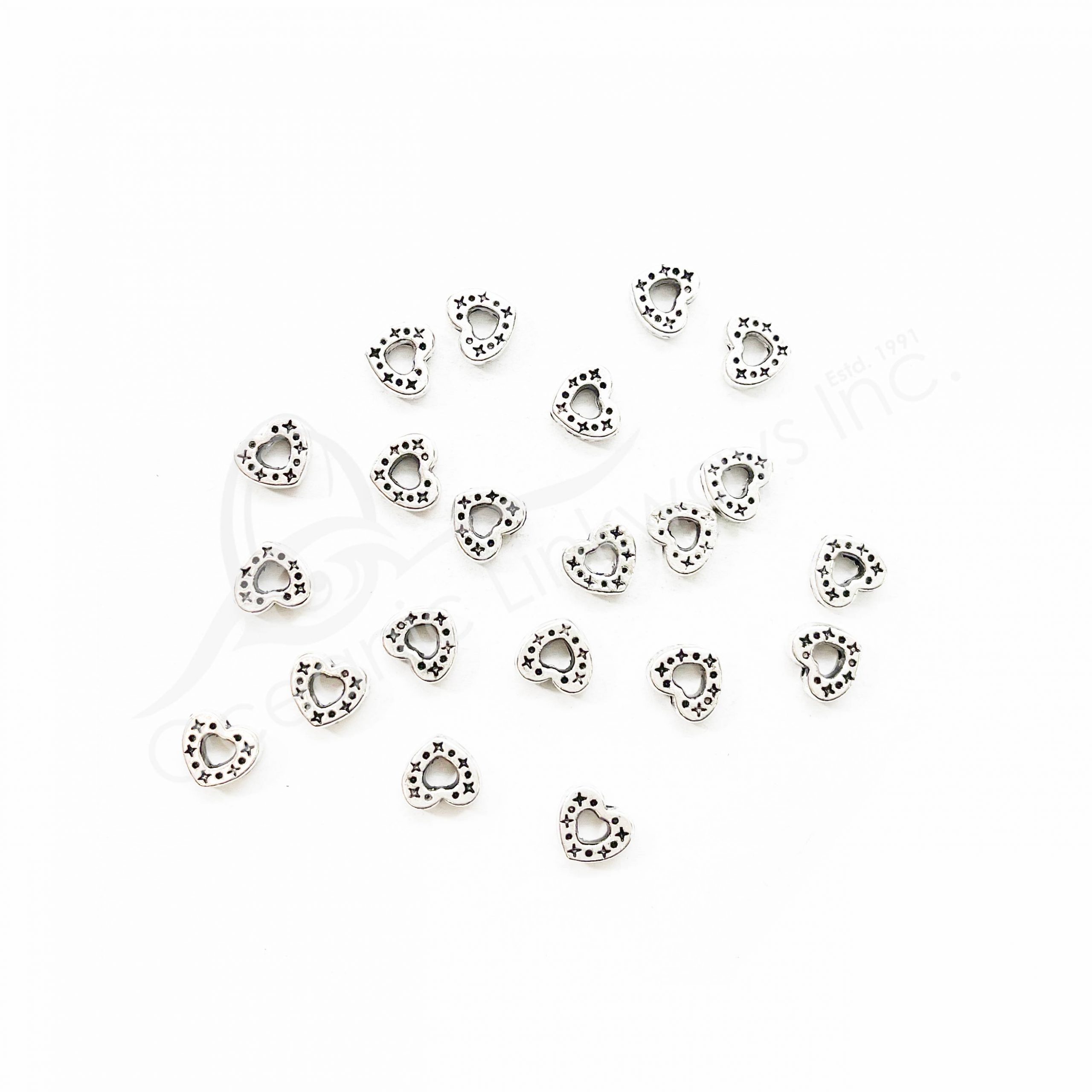 (CLOSE OUT) BEADS – METAL OPEN HEART (PK 100) 7 MM W X 3 MM T