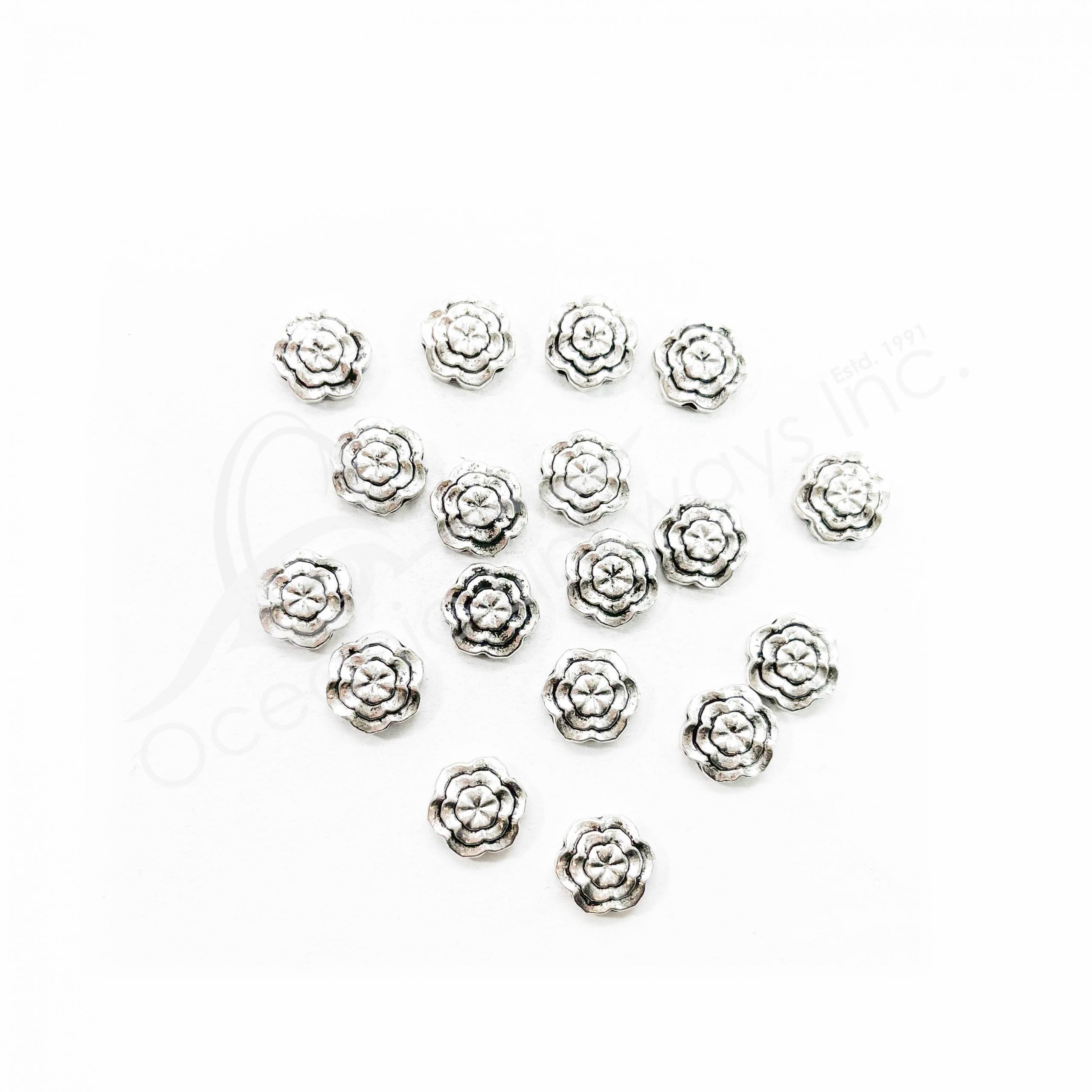 (CLOSE OUT) BEADS – METAL FLAT ROSE (PK 50) 1 CM D X 3 MM T