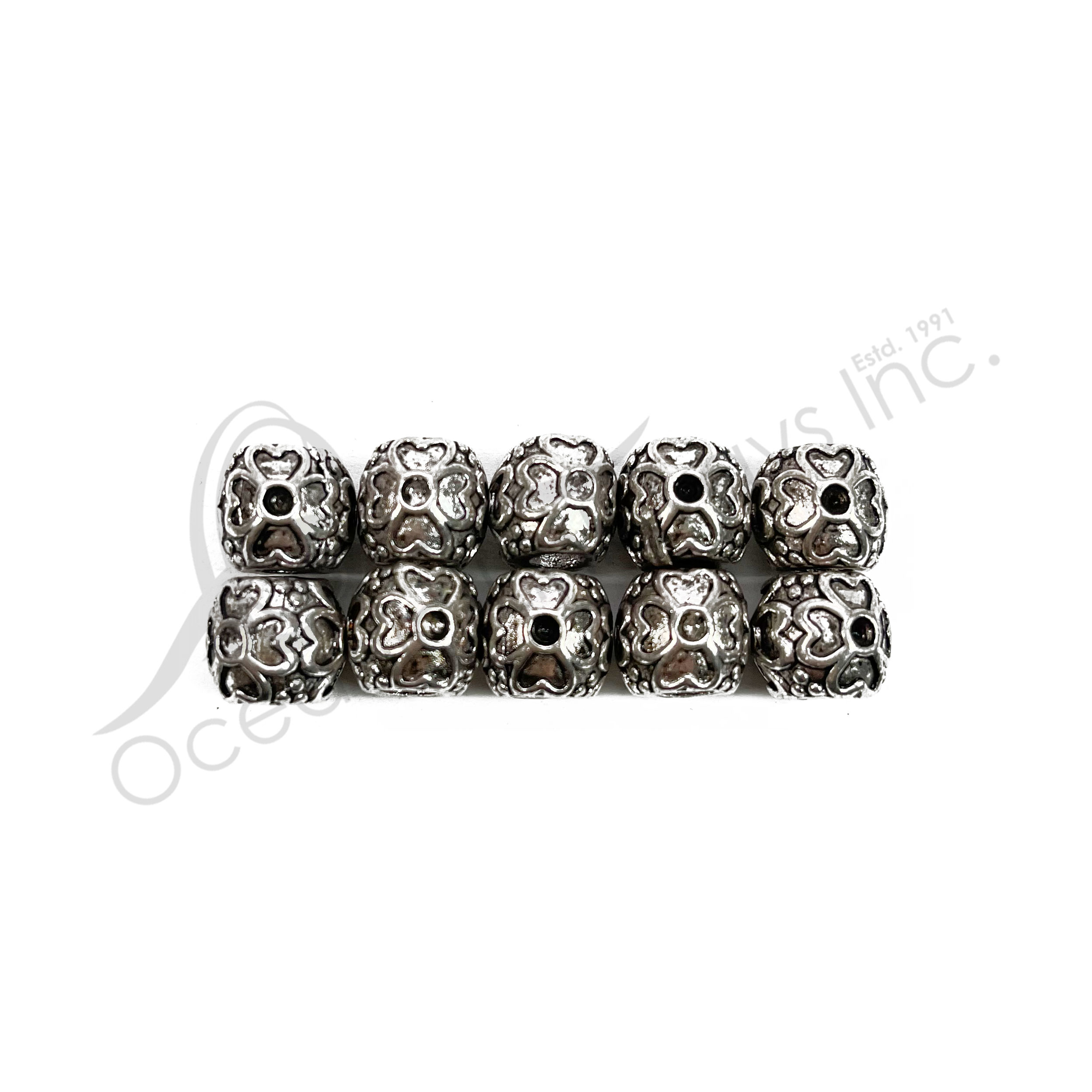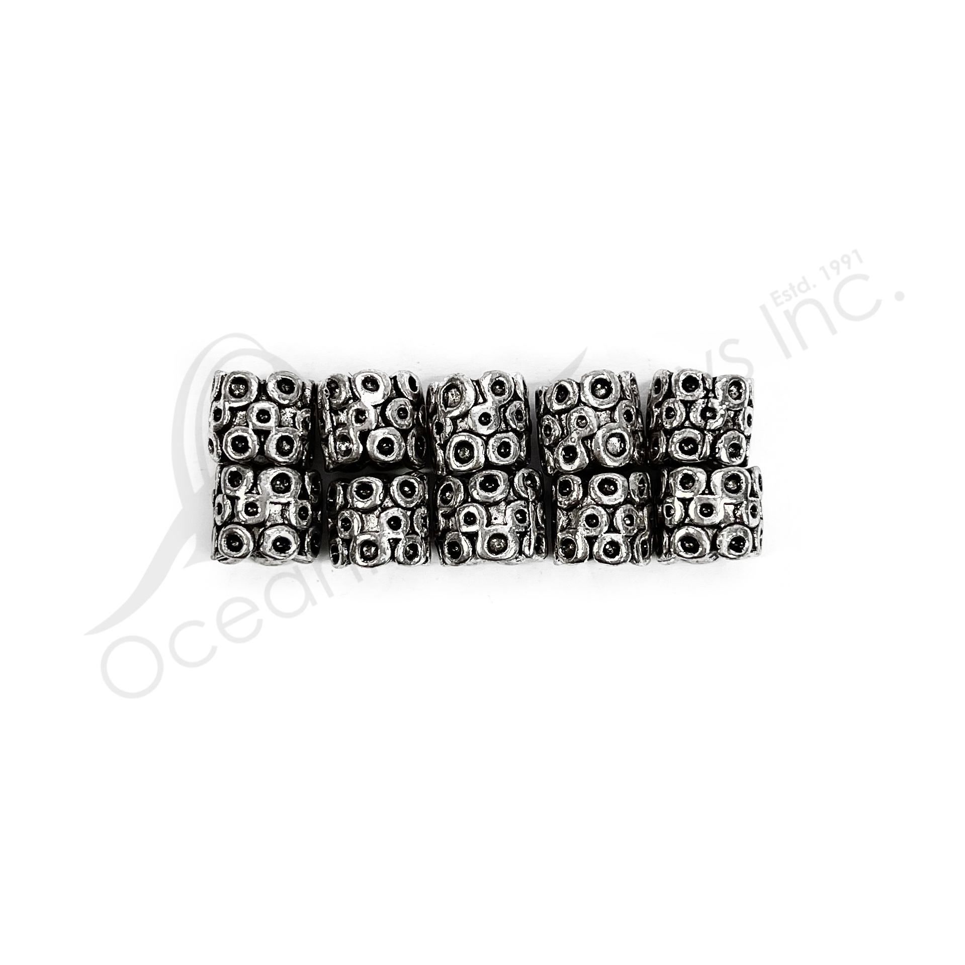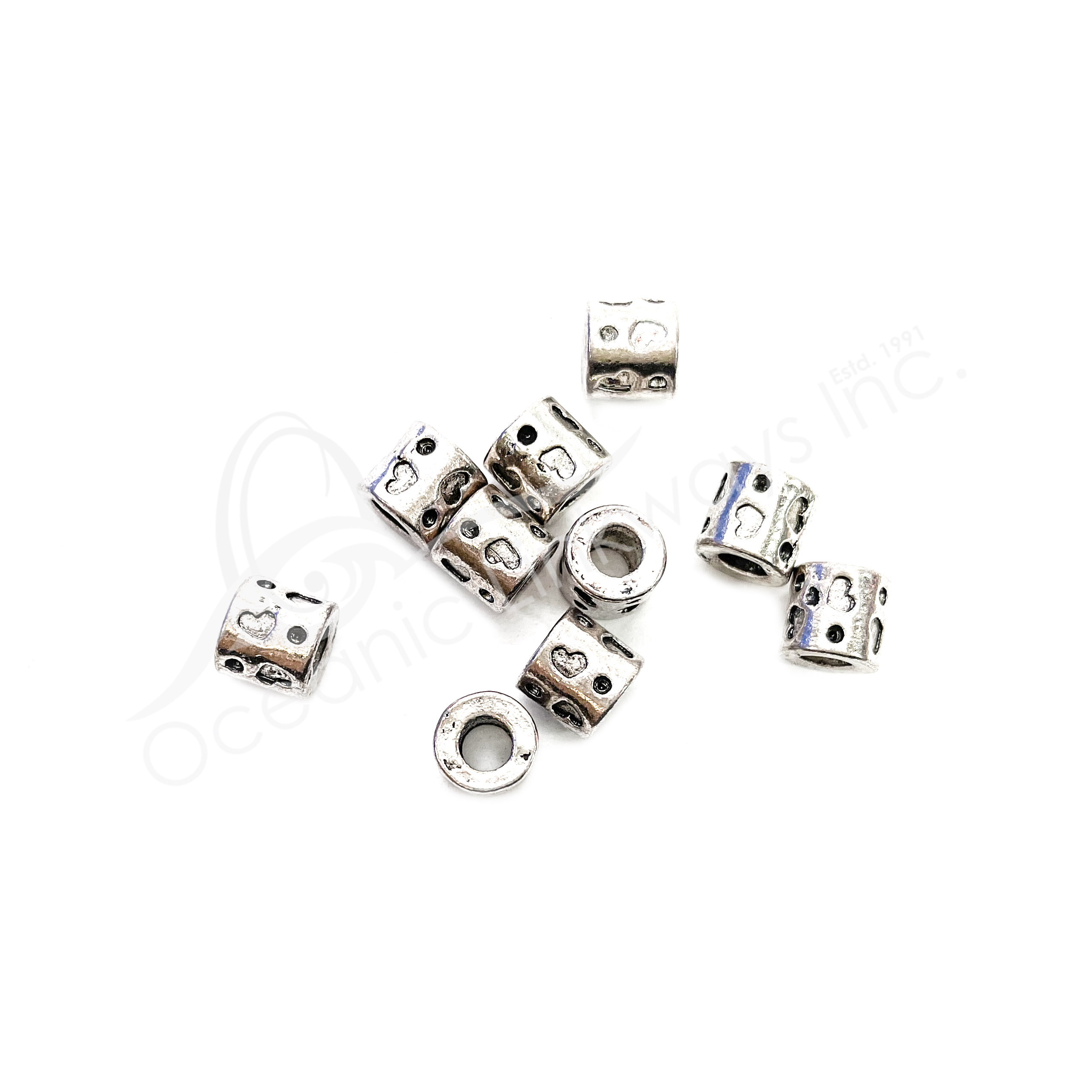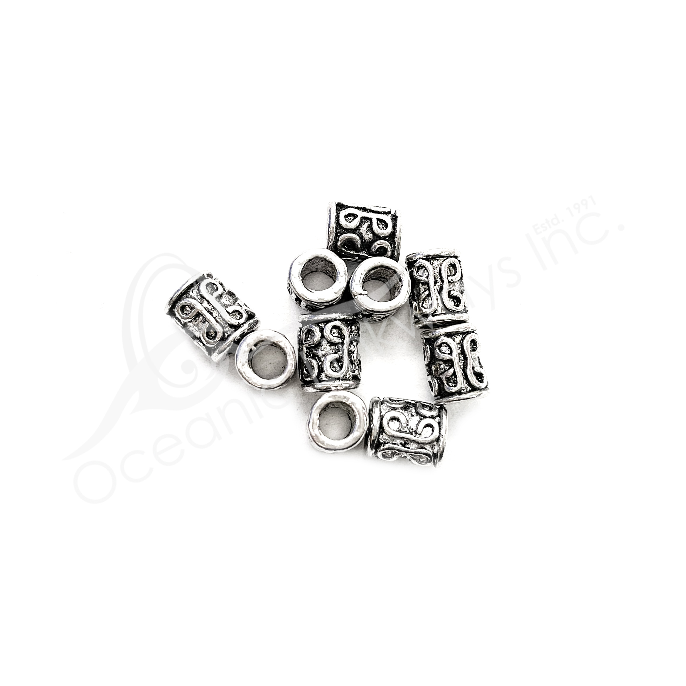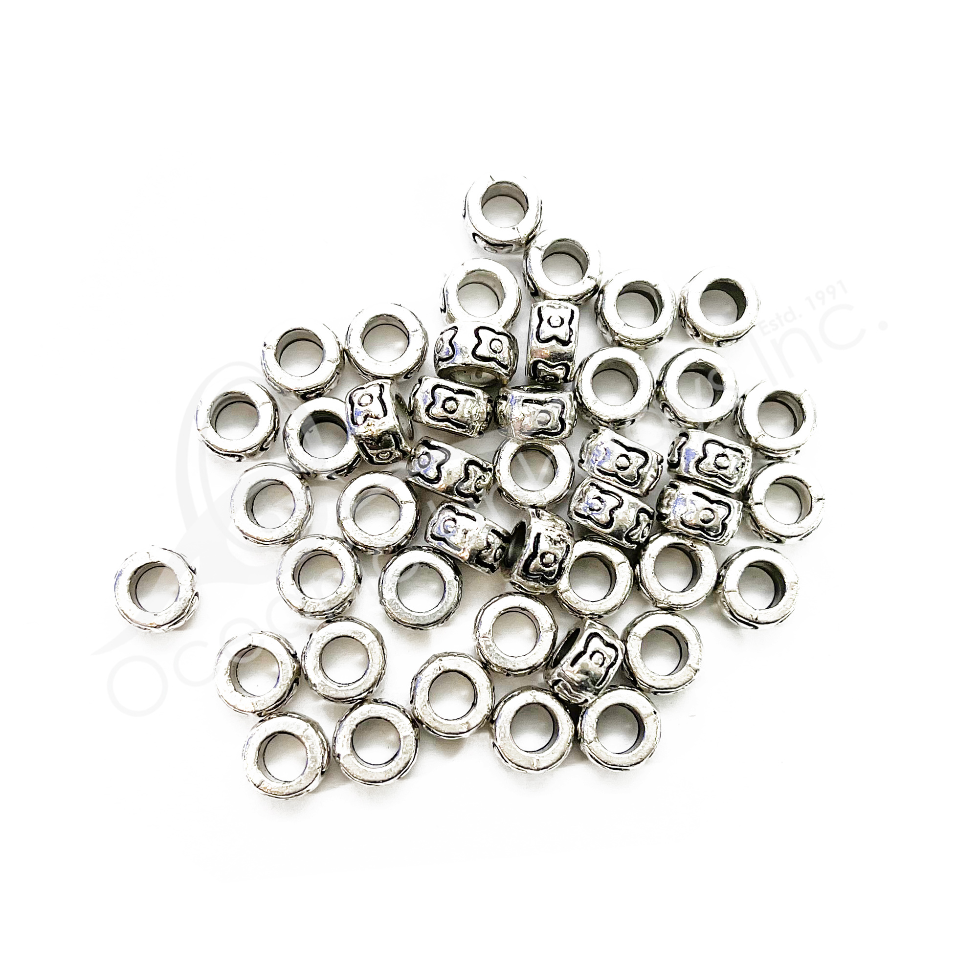 (CLOSE OUT) BEADS – METAL TUBE WITH FLOWERS (PK 50) 7 MM L X 8 MM D