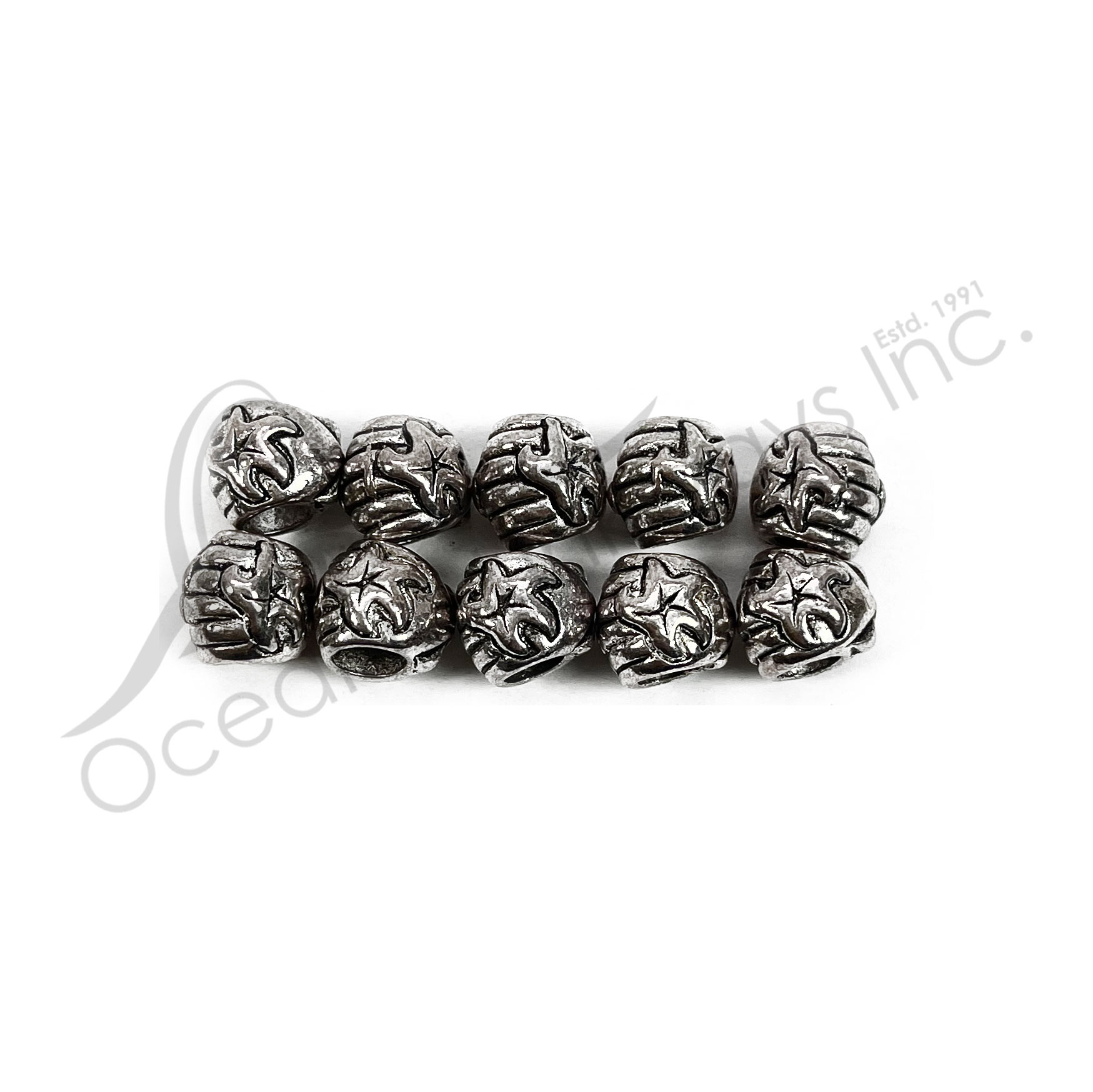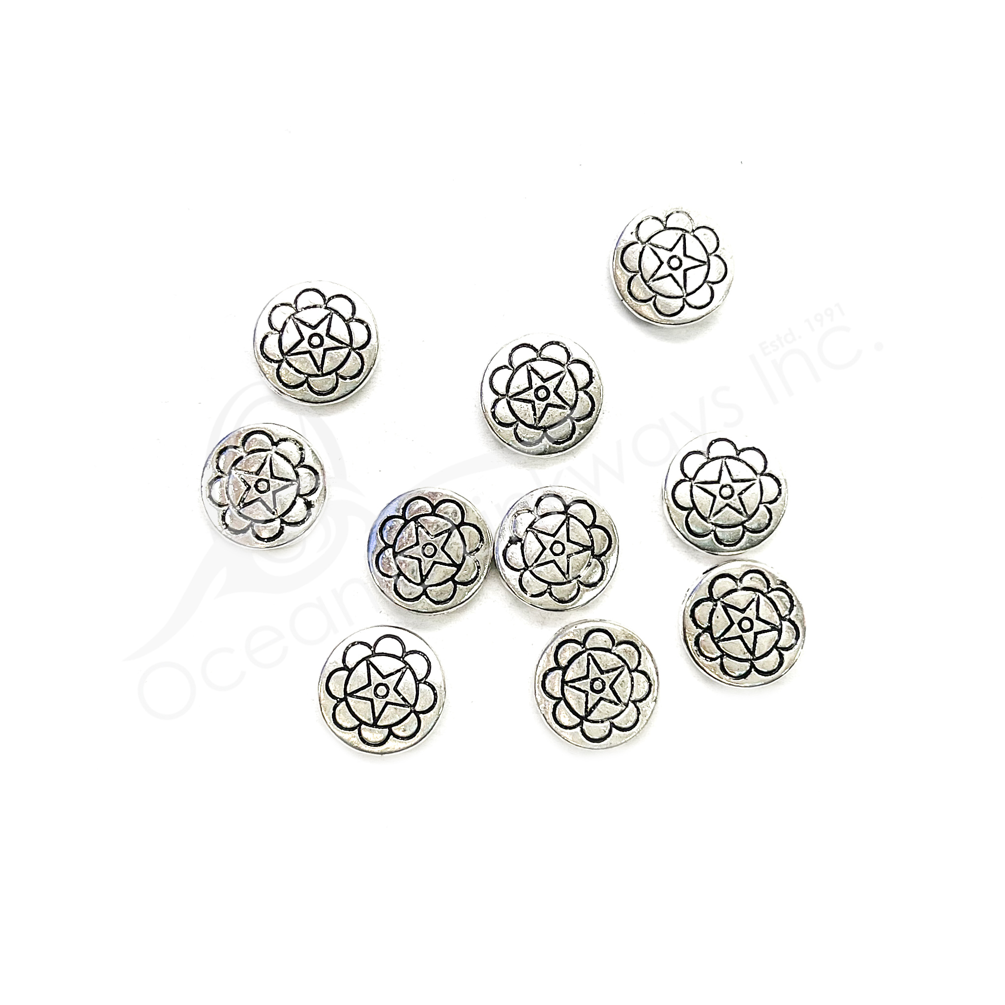 (CLOSE OUT) BEADS – METAL ROUND WITH SEA STAR (PK 10) 9 MM L X 7 MM DIA