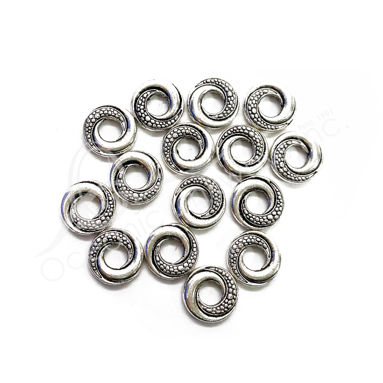 (CLOSE OUT) BEADS – METAL OVAL WITH SPIRALS (PK 10) 2 CM L X 12 MM T