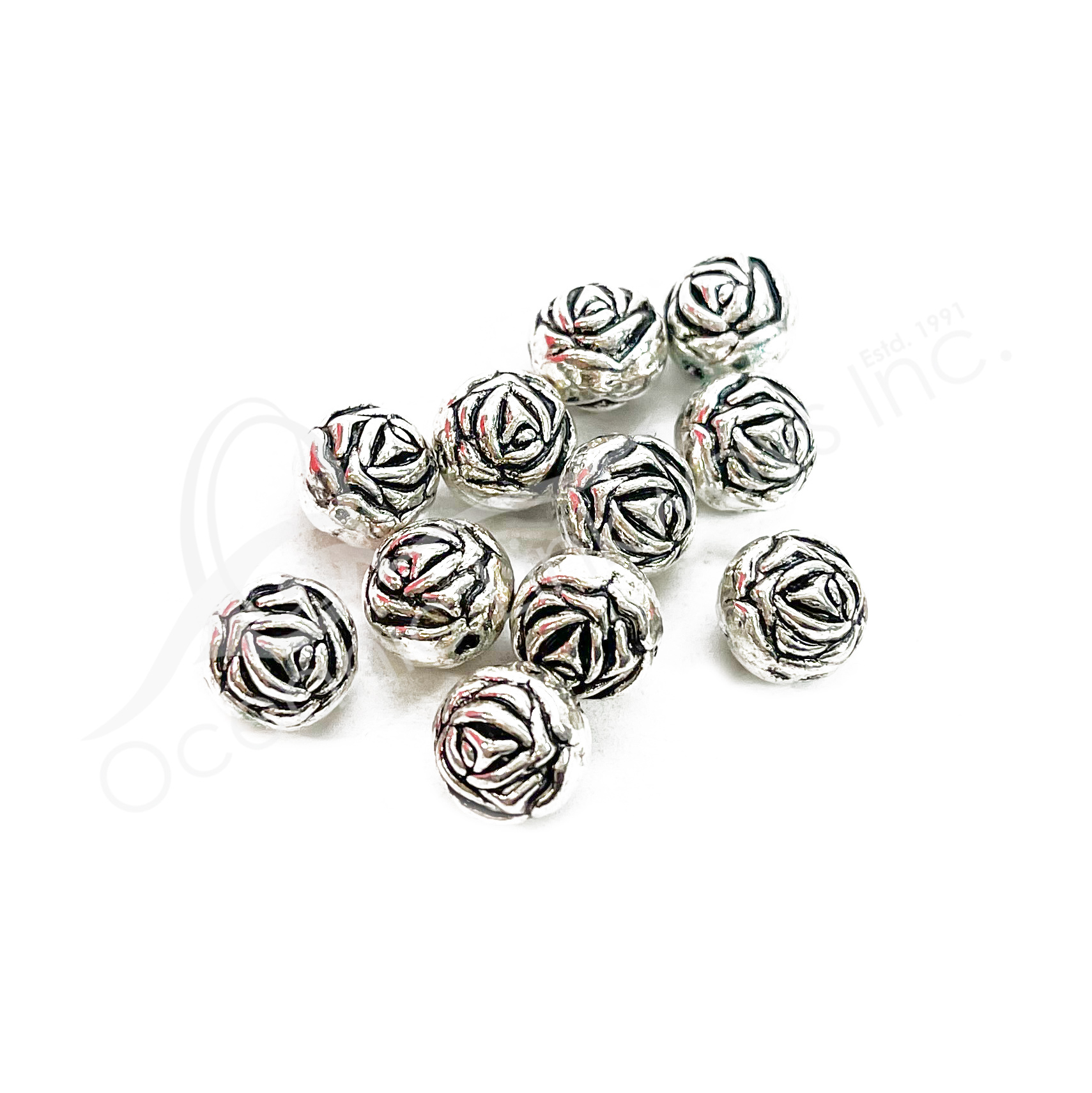 (CLOSE OUT) BEADS – METAL ROSE (PK 11) 1 CM D X 8 MM T