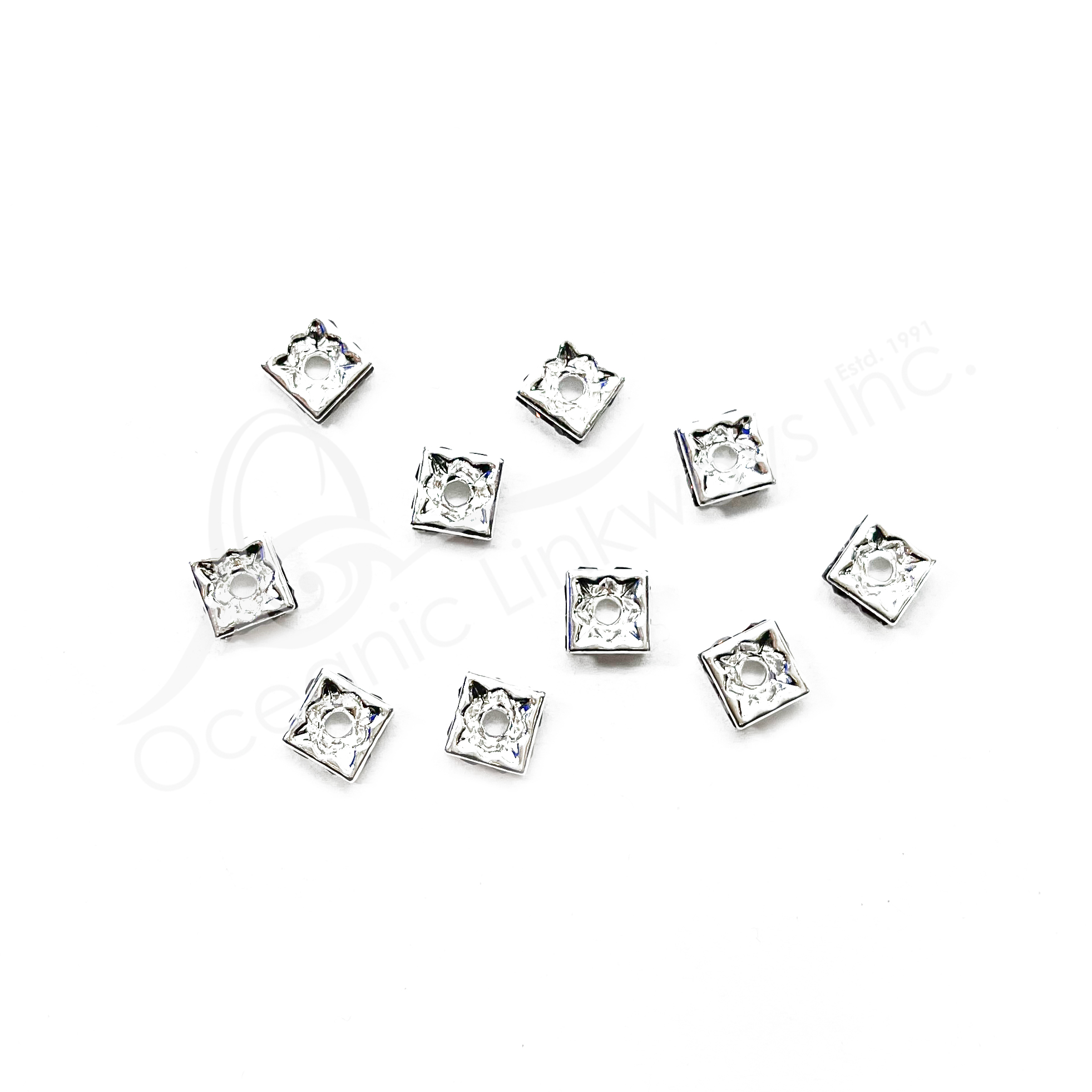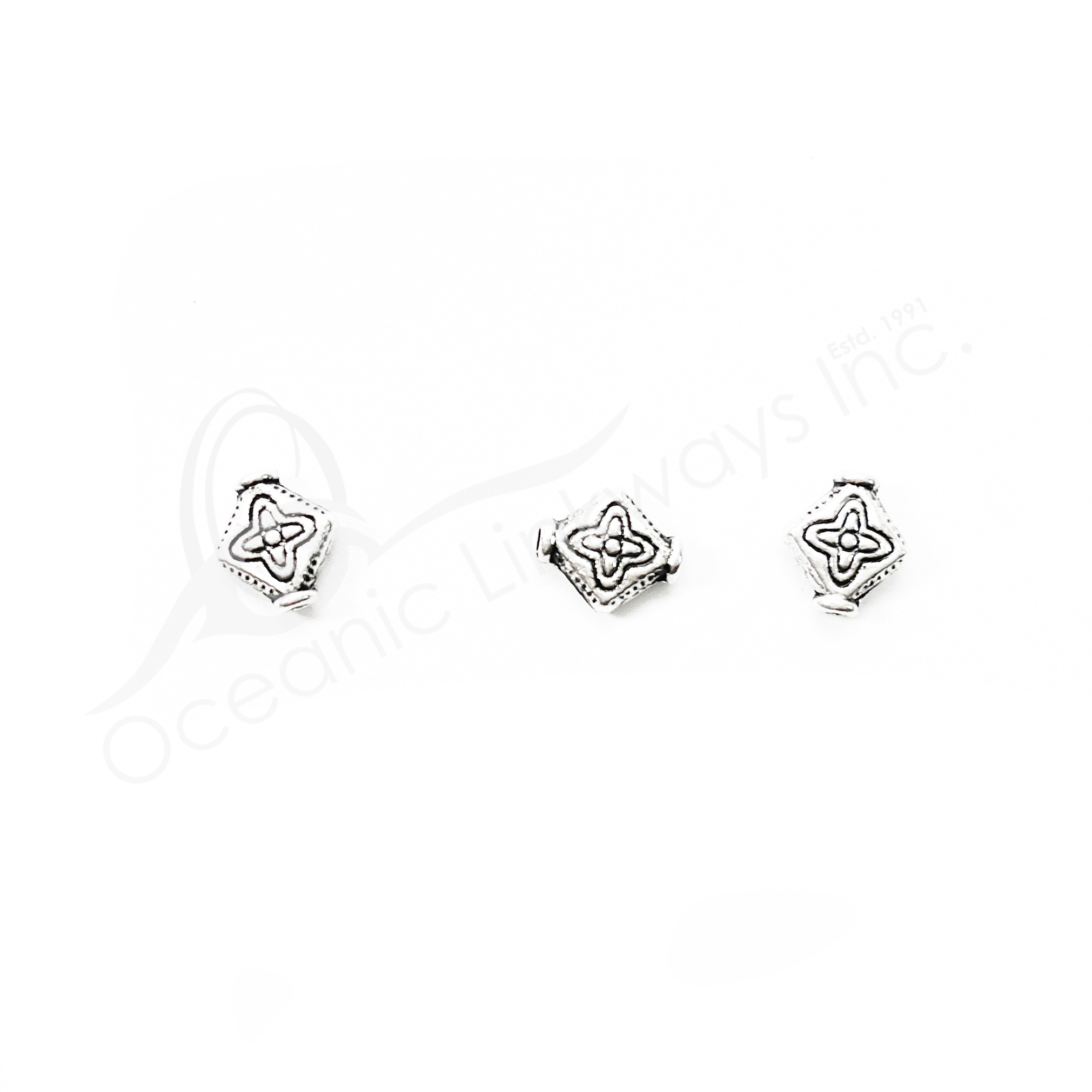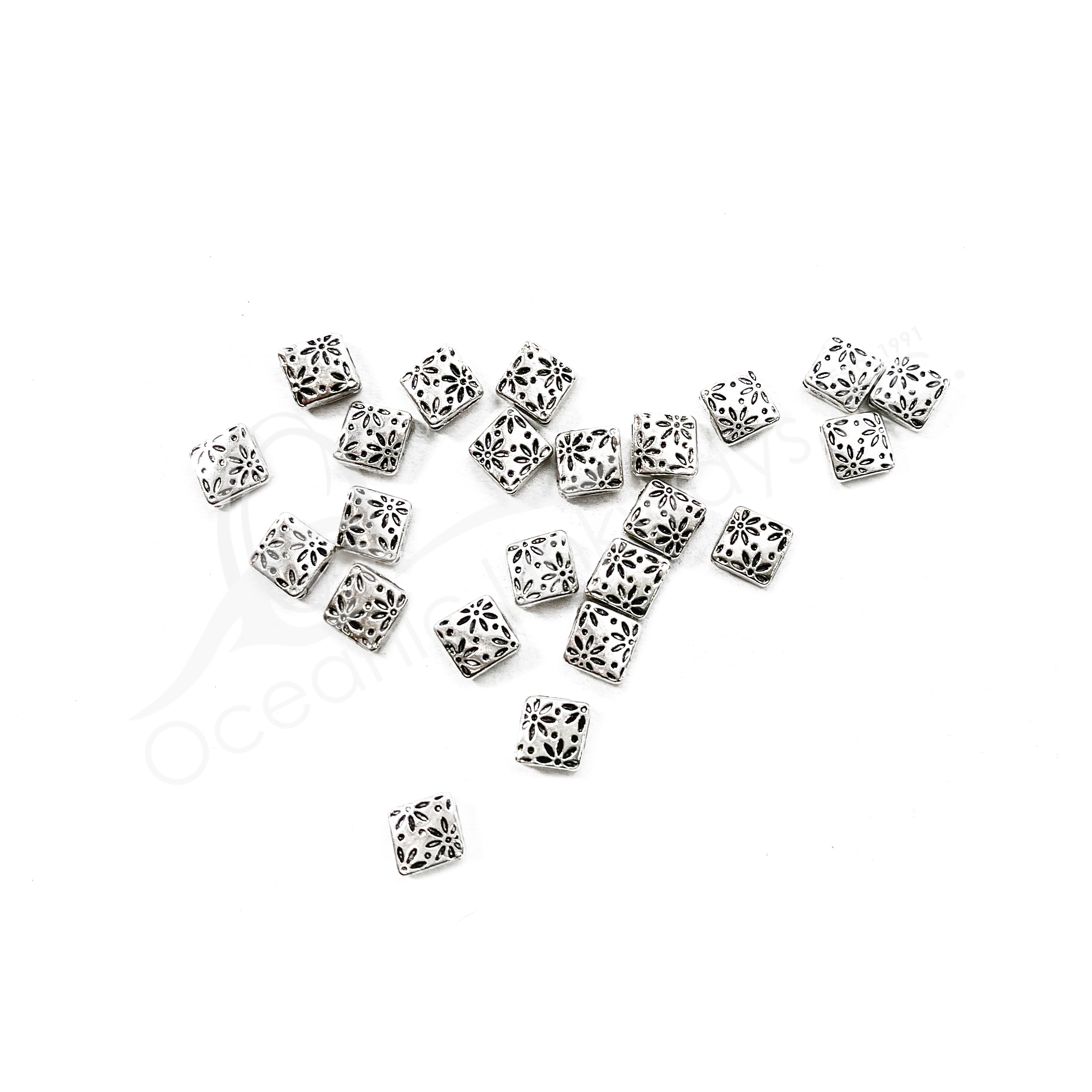 (CLOSE OUT) BEADS – METAL SQUARE FLAT WITH FLOWERS (PK 100) 7 MM W X 3 MM T