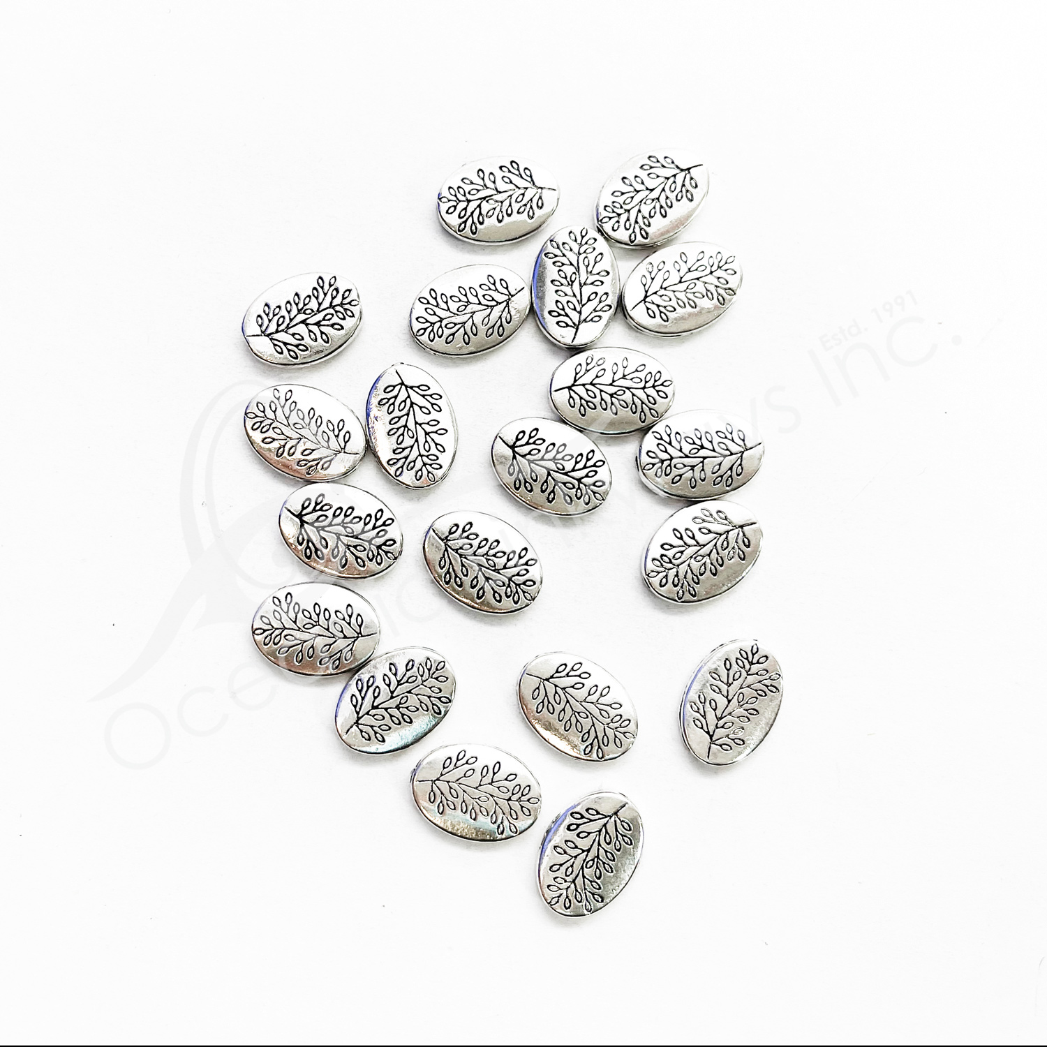 (CLOSE OUT) BEADS – METAL FLAT OVAL WITH BRANCHES (PK 50) 1.3 CM L X 3 MM T