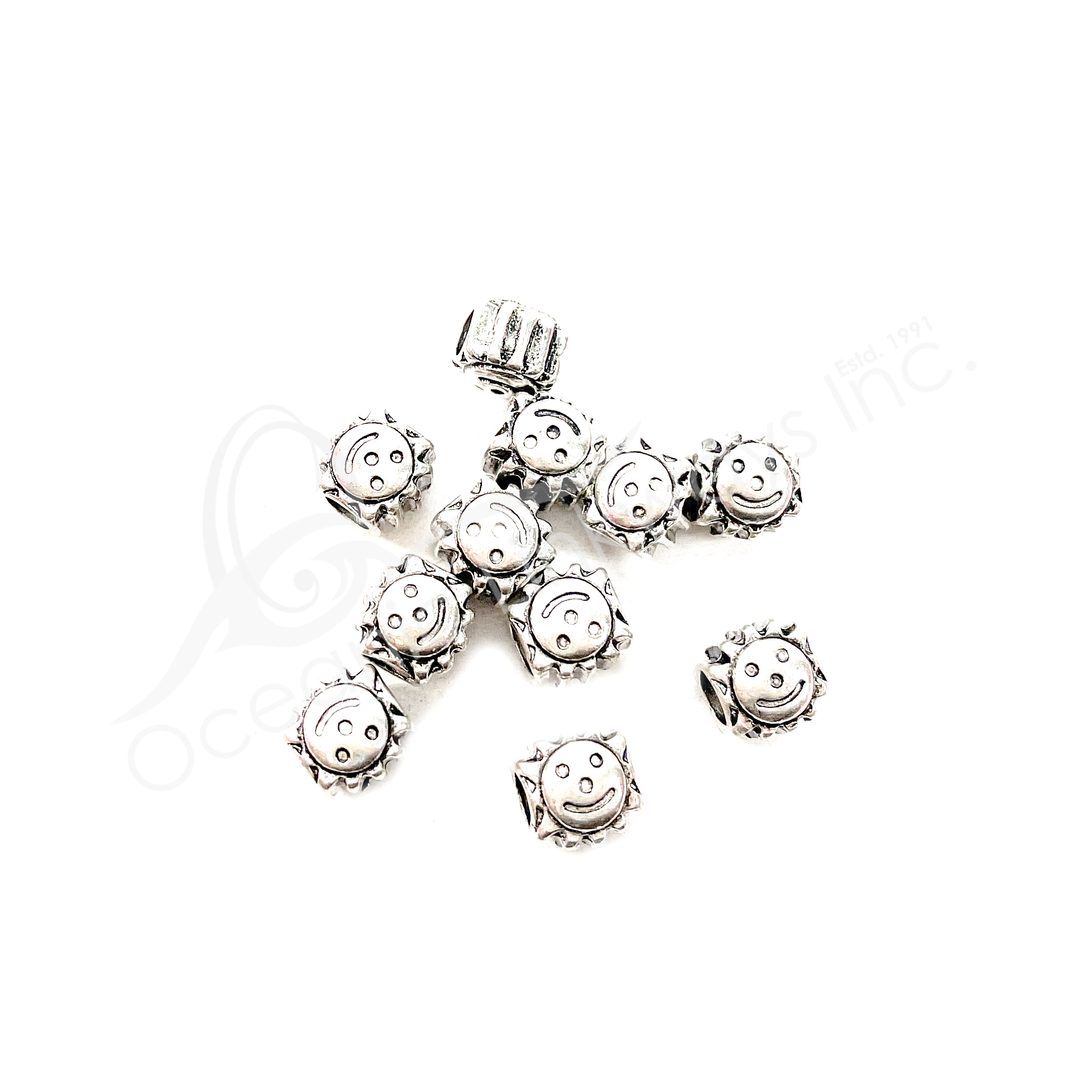 (CLOSE OUT) BEADS – METAL SMILEY SUN (PK 50) 9 MM W X 7 MM T