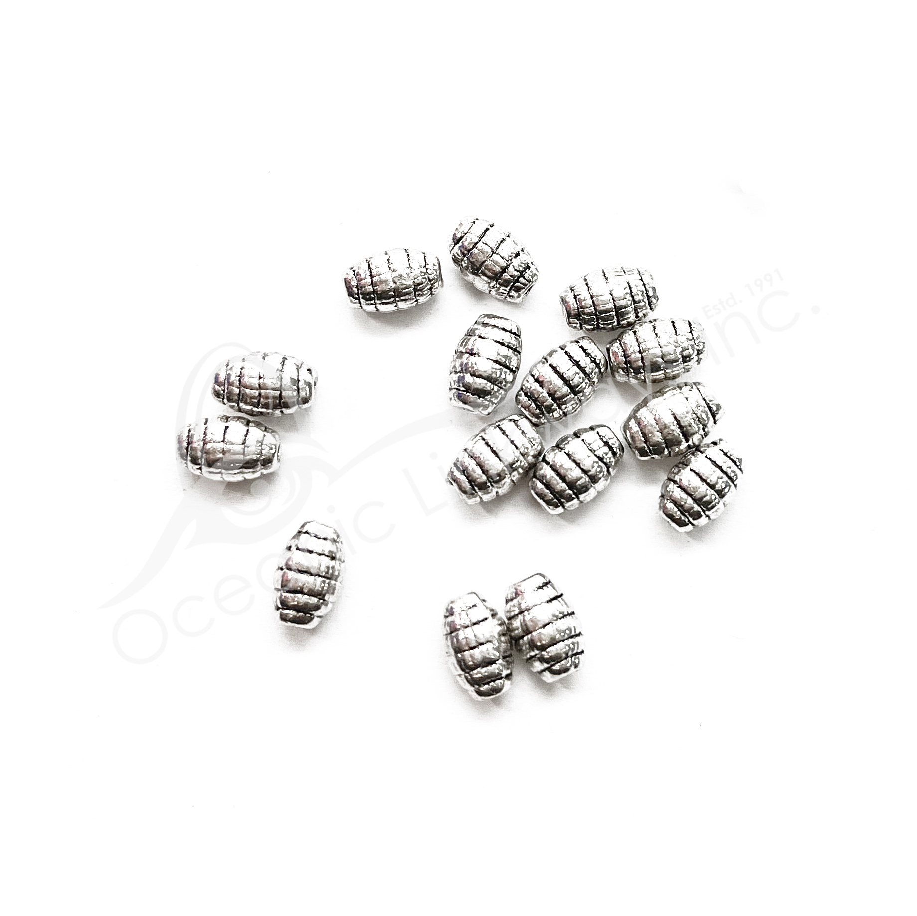 (CLOSE OUT) BEADS – METAL OVAL TUBE WITH STRIPES (PK 100) 8 MM L X 4 MM T