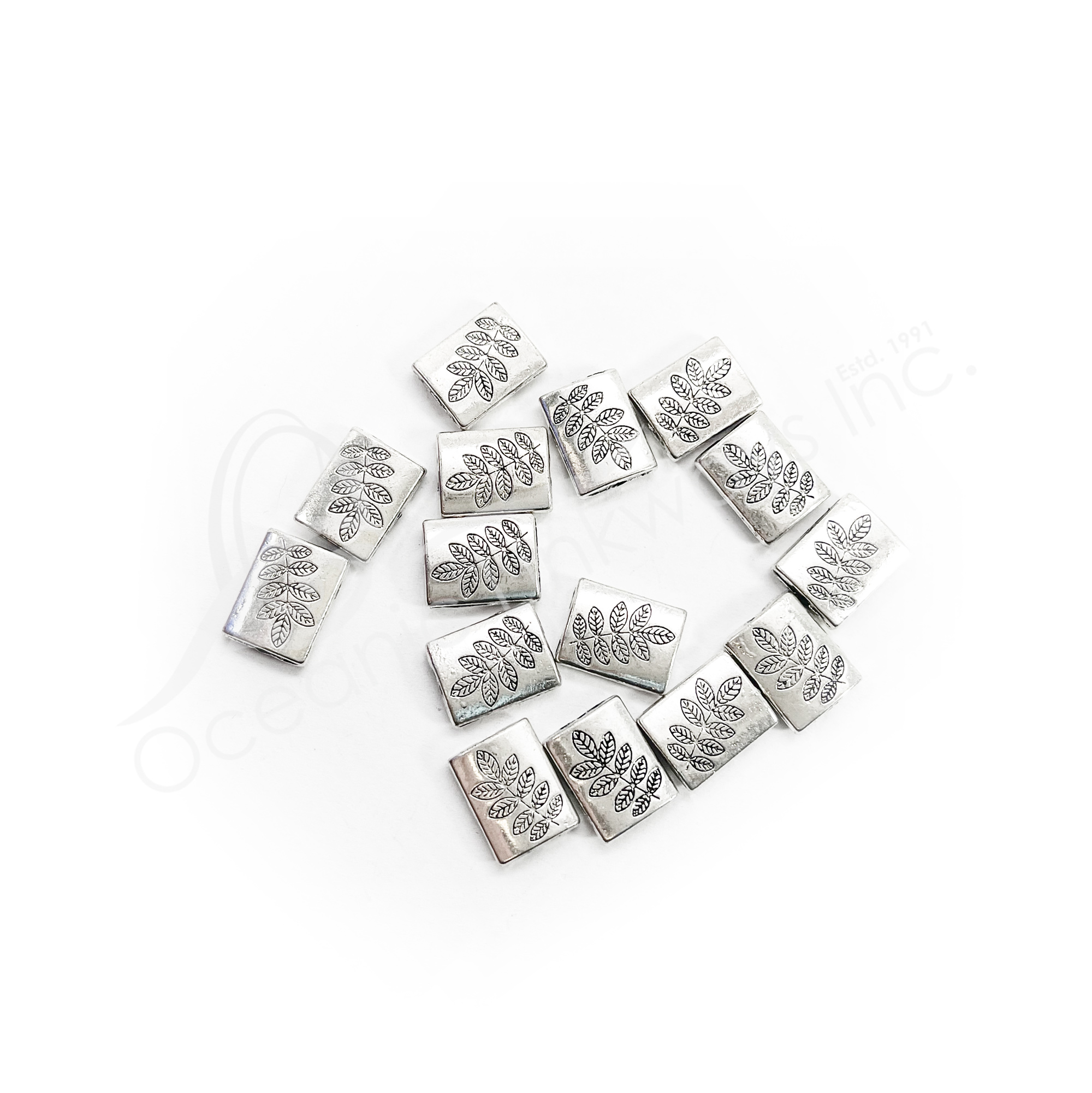 (CLOSE OUT) BEADS – METAL RECTANGLE FLAT WITH BRANCHE (PK 50) 12 MM L X 3 MM T