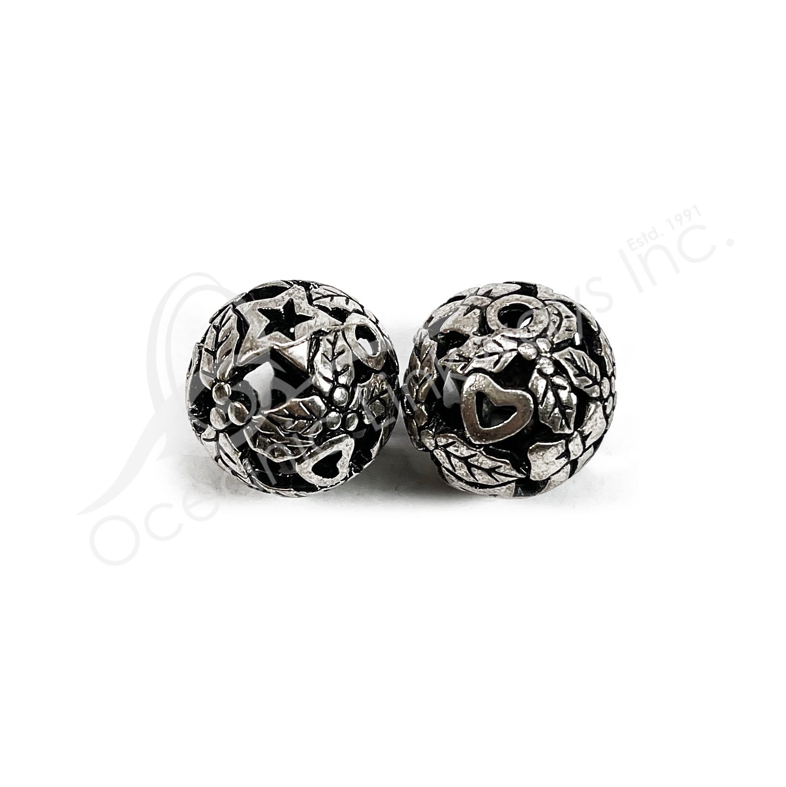 (CLOSE OUT) BEADS – METAL ROUND OPEN LEAVES, HEART AND MOON DESIGN (PK 2) 17 MM L