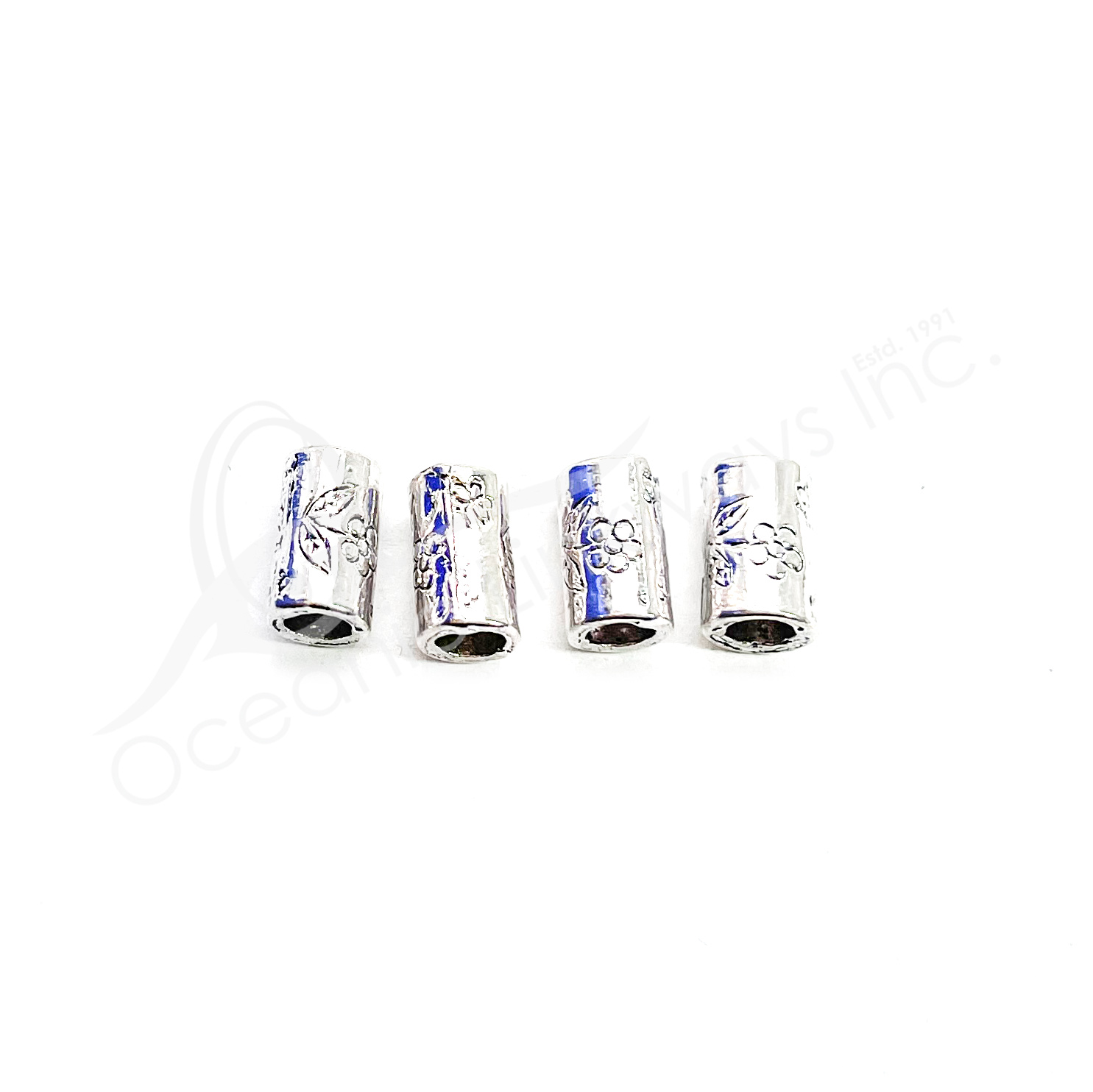 (CLOSE OUT) BEADS – METAL SHINY TUBE WITH FLOWER (PK 4) 6 MM D X 1 CM L