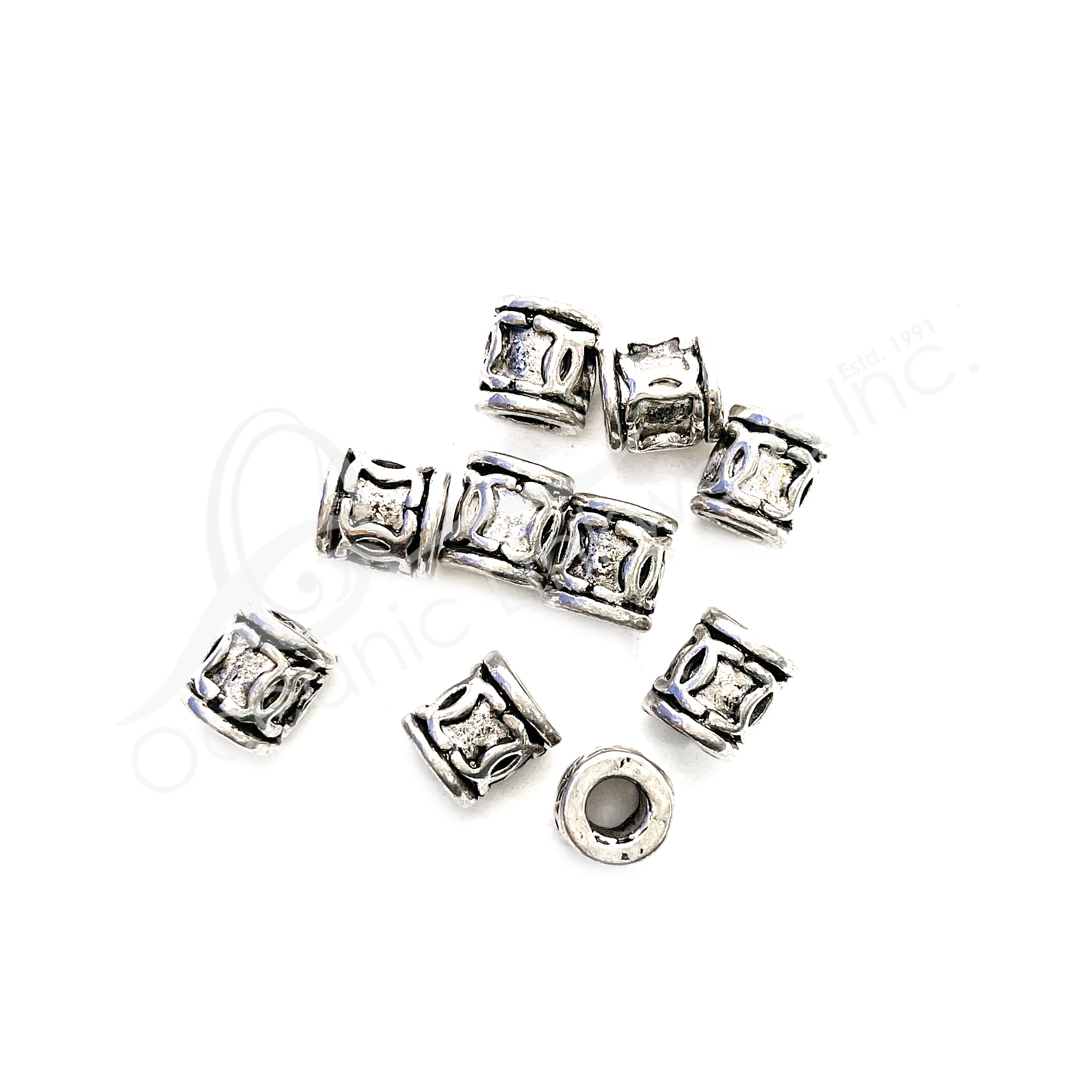 (CLOSE OUT) BEADS – METAL TUBE WITH MOONS (PK 10) 8 MM L X 9 MM DIA