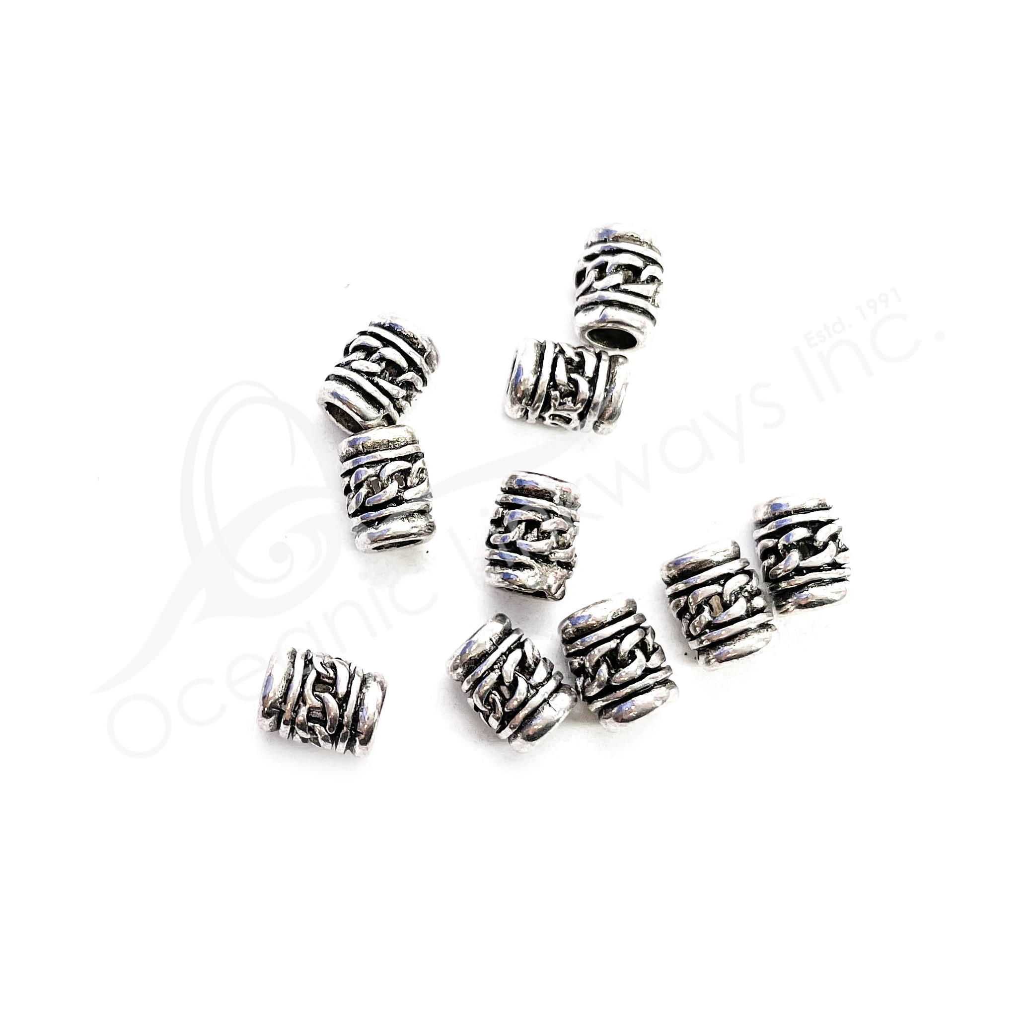 (CLOSE OUT) BEADS – METAL TUBE WITH CHAIN DESIGN (PK 10) 1 CM L X 7 MM D