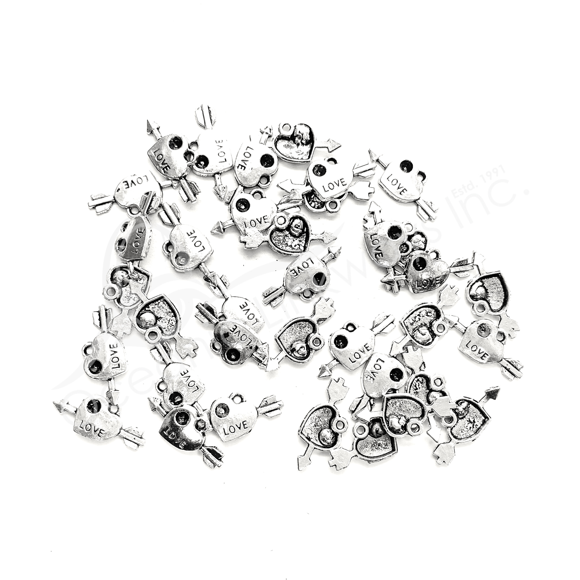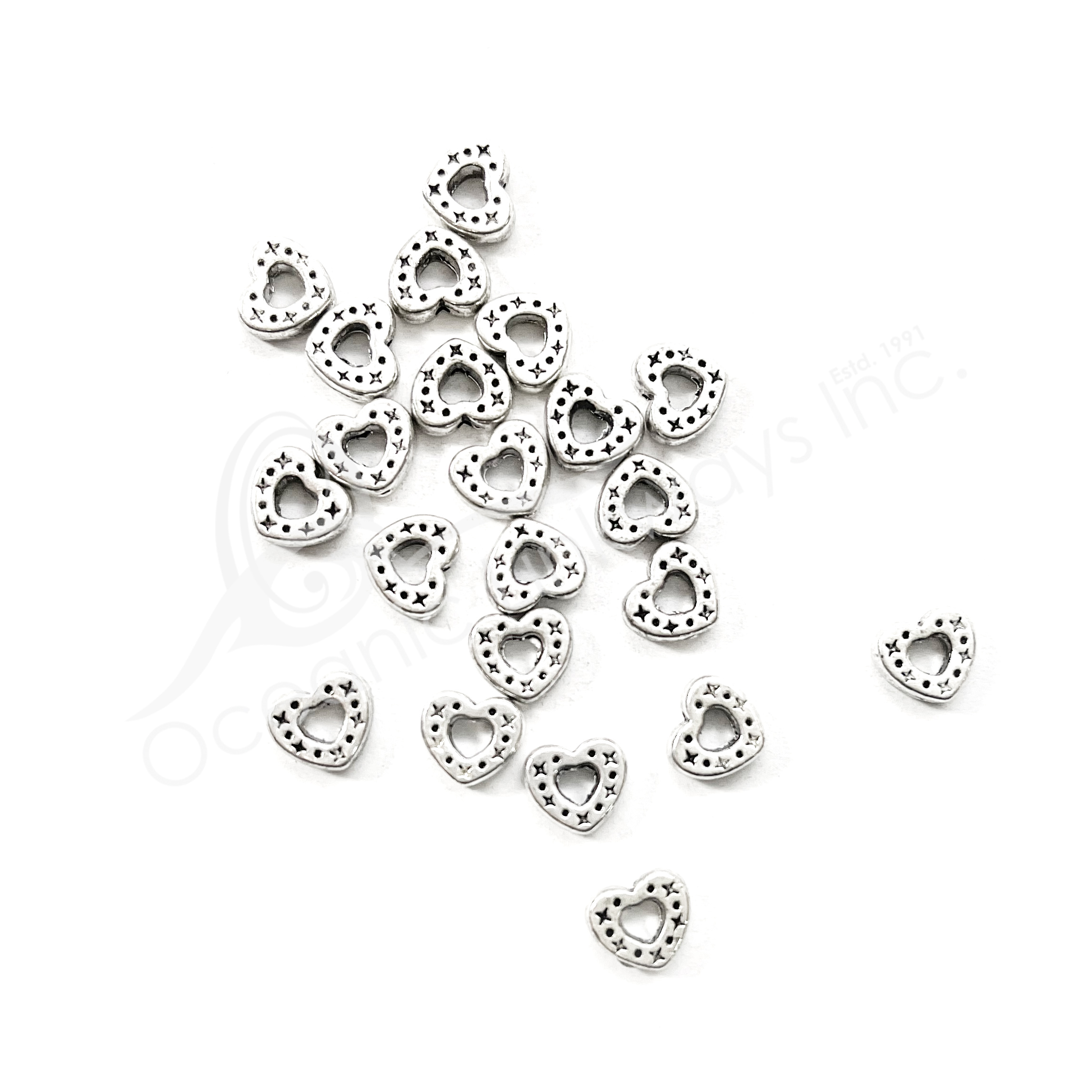 (CLOSE OUT) BEADS – METAL HEART WITH CUT HEART (PK 100) 7 MM W X 3 MM T