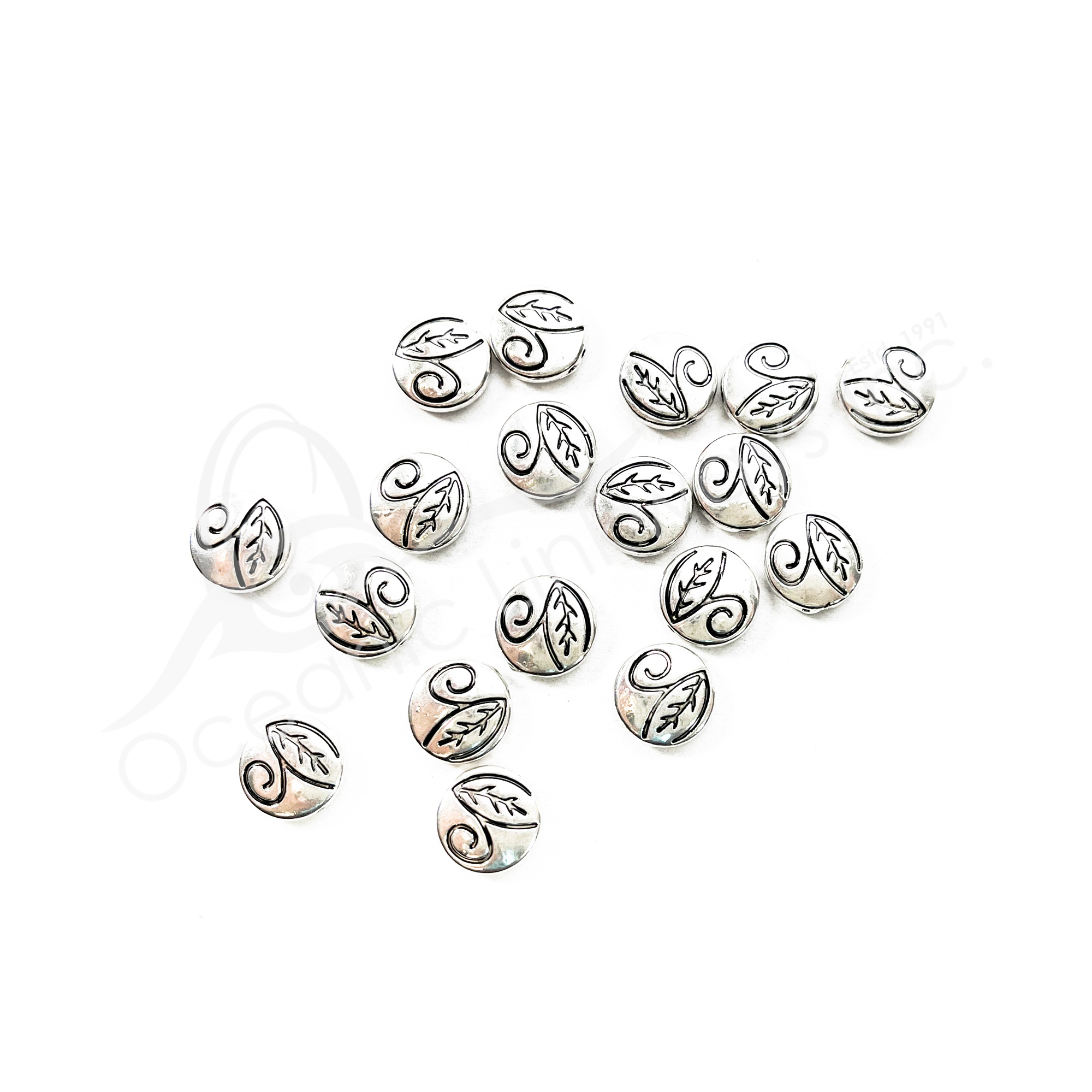 (CLOSE OUT) BEADS – METAL ROUND FLAT WITH LEAF (PK 50) 11 MM D X 3 MM T