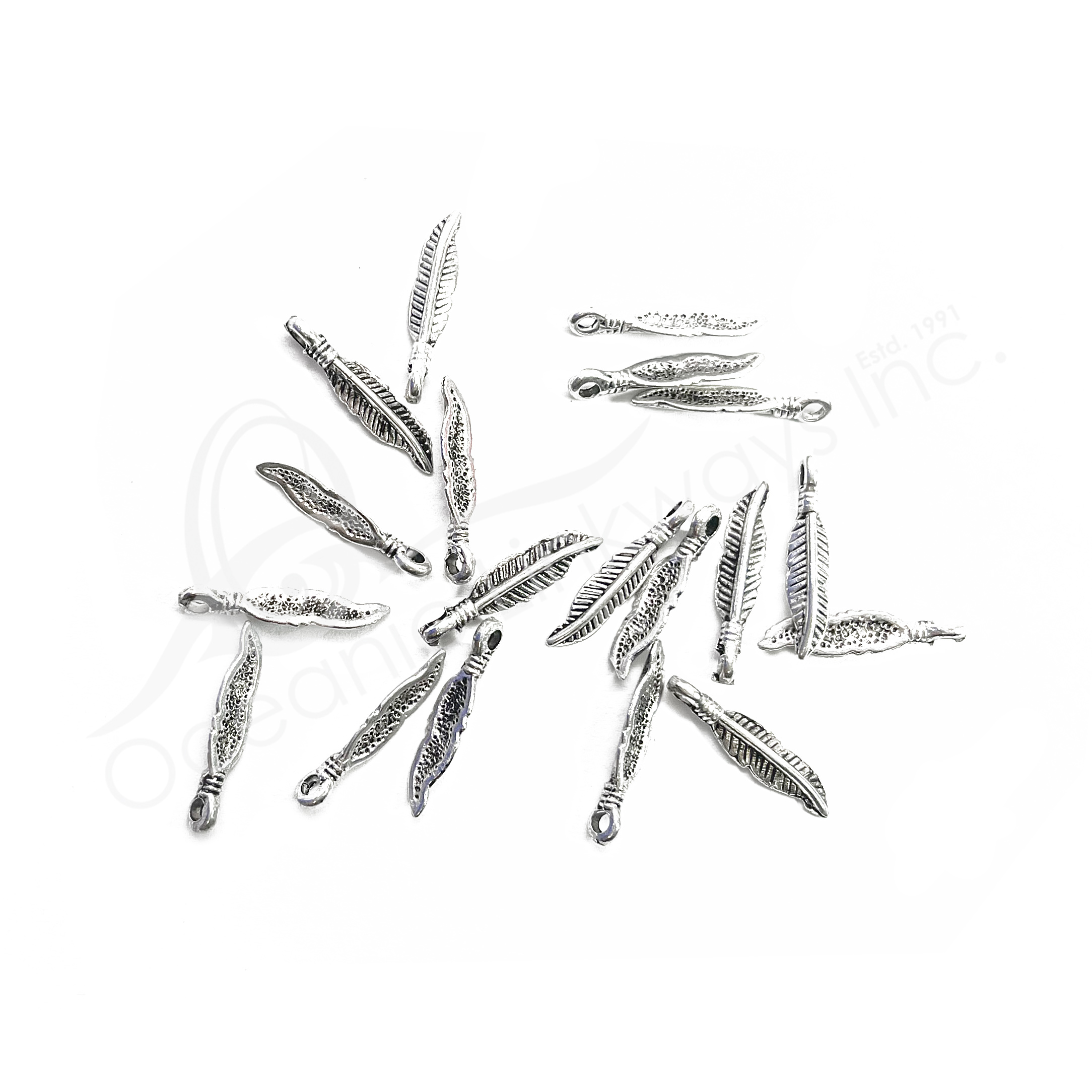(CLOSE OUT) BEADS – METAL FEATHER CHARM (PK 60) 2 CM L X 2 MM T