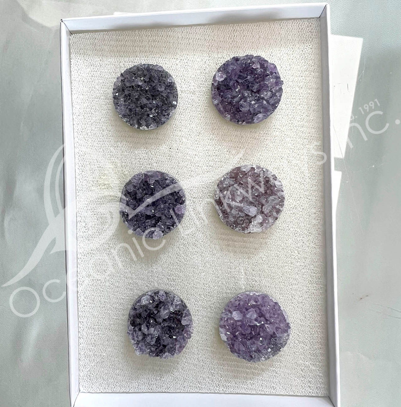 (CLOSE OUT) CABOCHON – AMETHYST AA CIRCLE DRUSE XS (PAIR) 0.5″