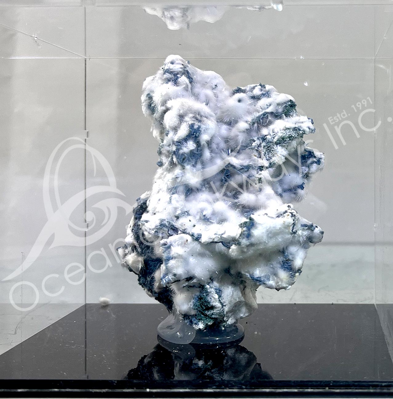 (CLOSE OUT) SPECIMEN – OKENITE ON CHALCEDONY IN ACRYLIC BOX 4.5-6″