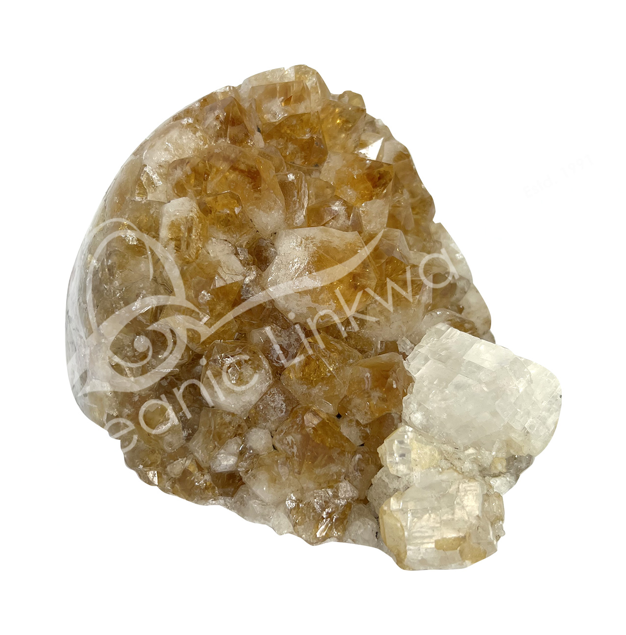 (CLOSE OUT) SPECIMEN – APOPHYLLITE & STILBITE, MIXED COLORS ON METAL STAND 21 X 15″