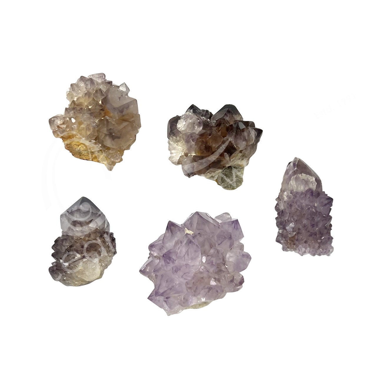 POINT – MIXED AMETHYST, CITRINE & CRYSTAL QUARTZ WITH INCLUSIONS POLISHED 0.5-1.5″