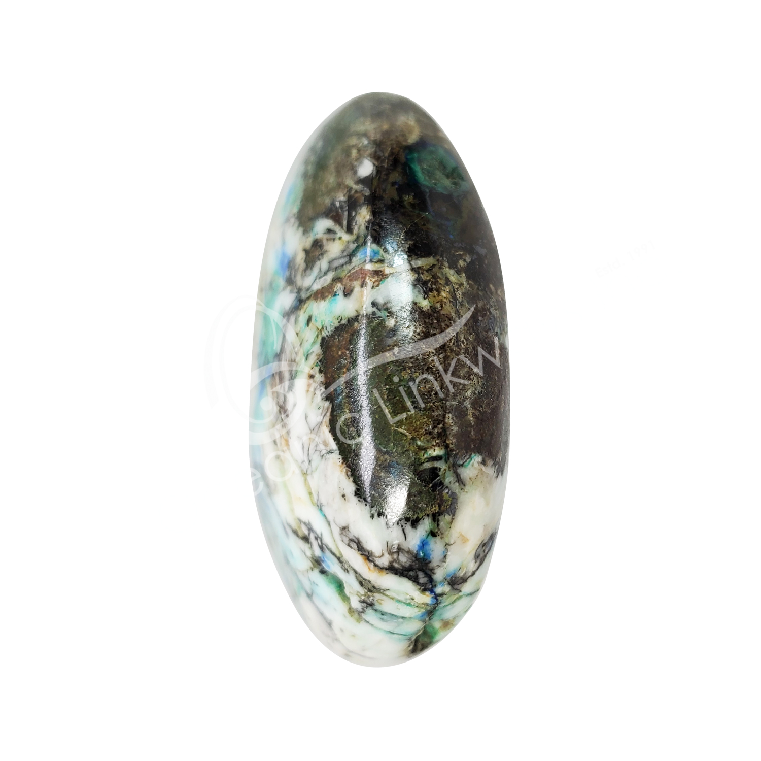 PALM STONE – QUARTZ WITH CHRYSOCOLLA 2.5″