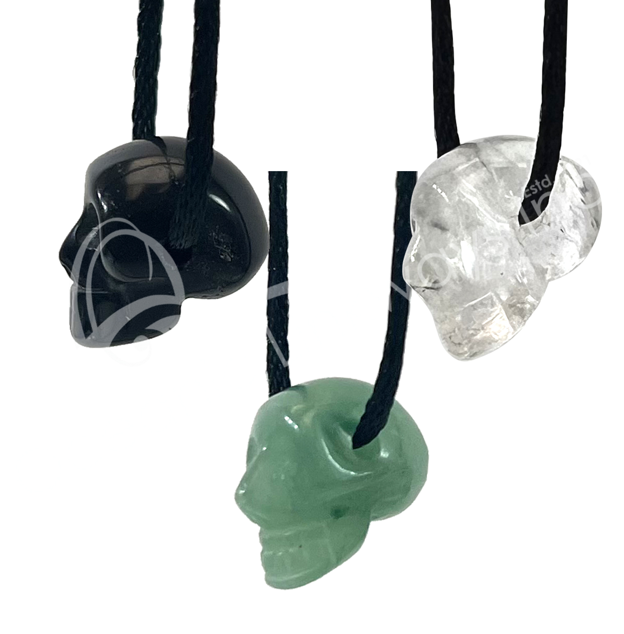 PENDANT – CARVING SKULL MIXED STONES (SET OF 12) 0.75″