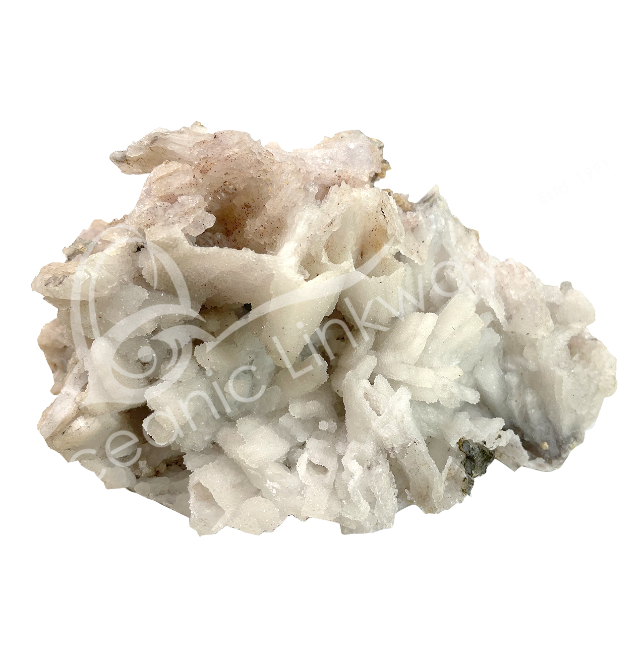 SPECIMEN – SCOLECITE CRYSTAL QUARTZ ON PINK STILBITE 18 X 8″