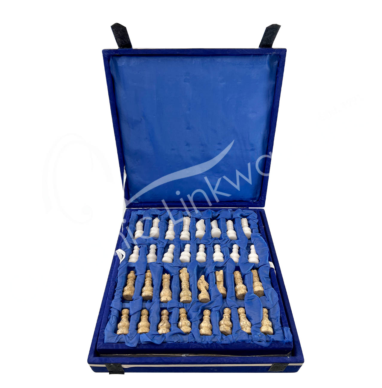 CHESS SET – CORAL & WHITE MARBLE 12 X 12″