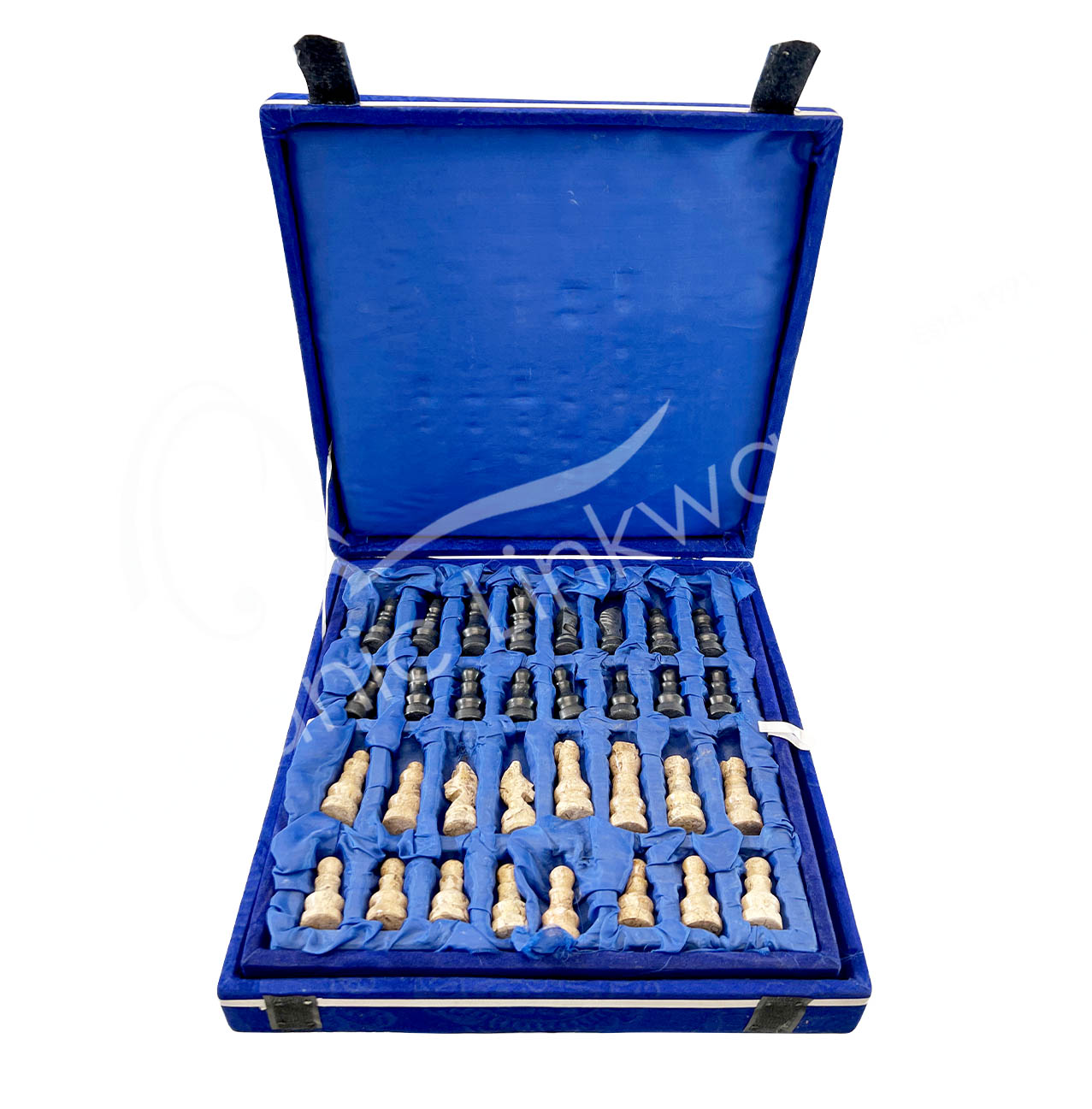CHESS SET – CORAL & BLACK MARBLE 12 X 12″