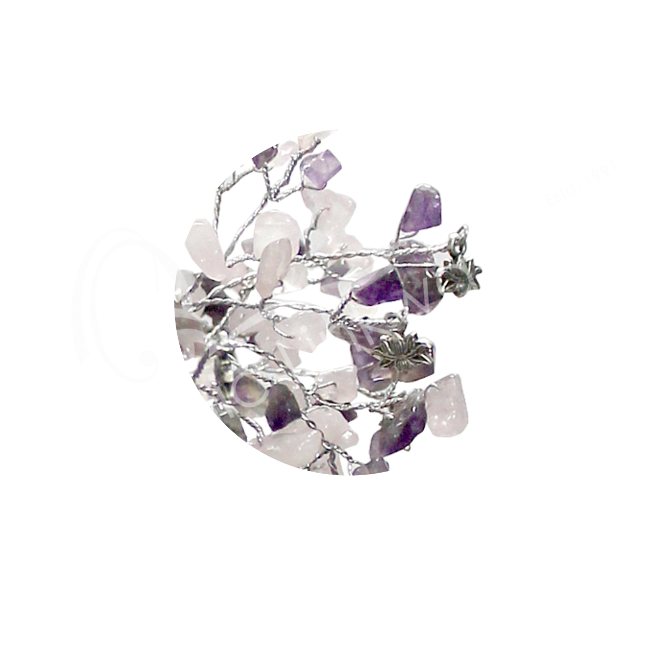 GEM TREE 7.5-8″ – AMETHYST & ROSE QUARTZ WITH LOTUS CHARMS 160 BEADS