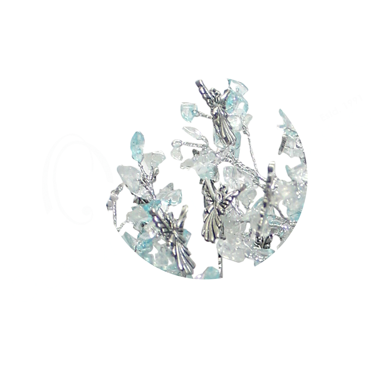 GEM TREE 8-8.5″ – BLUE TOPAZ & CRYSTAL QUARTZ WITH ANGEL CHARMS 300 BEADS