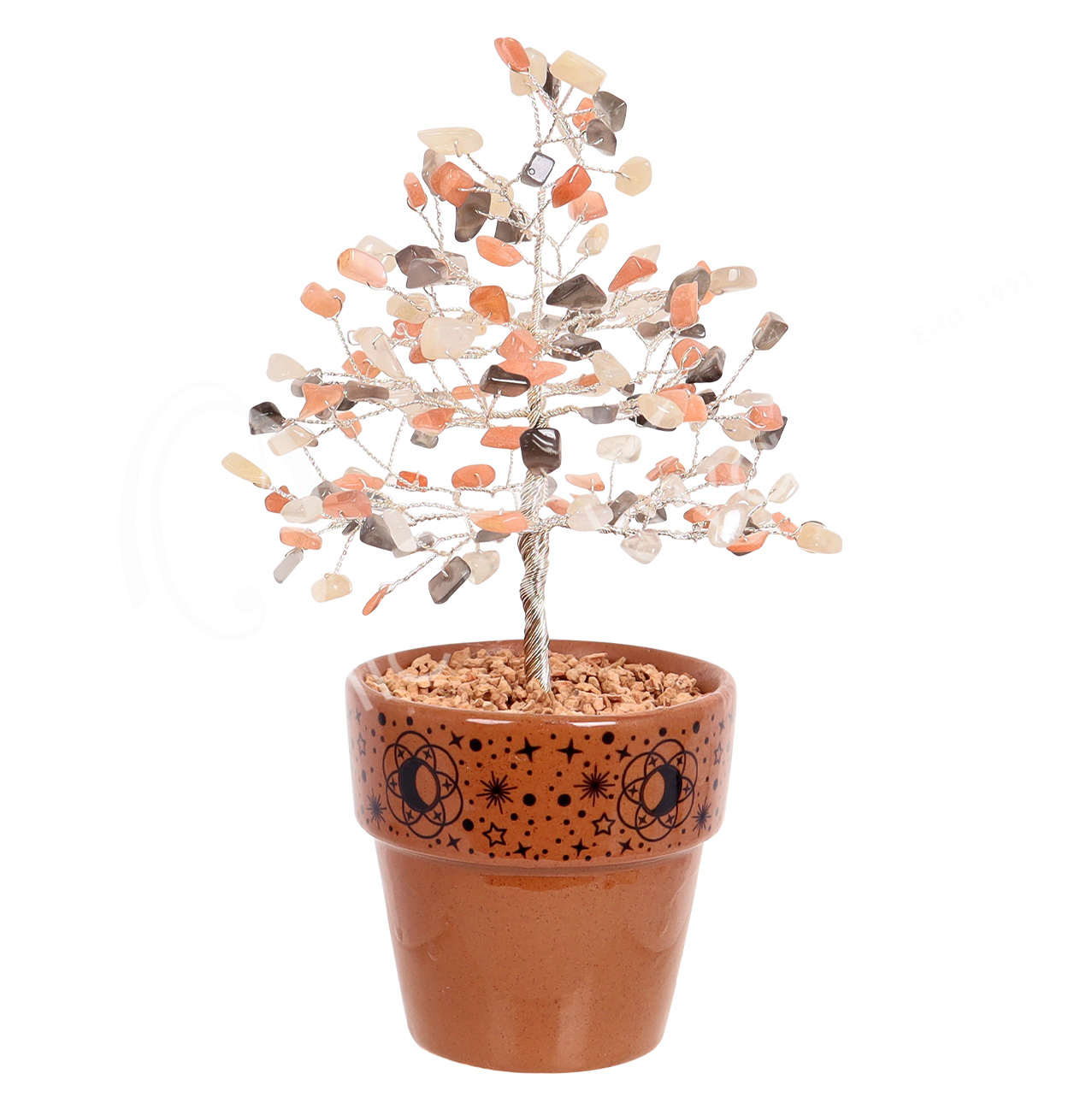 GEM TREE 7.5″ – MOONSTONE, RAINBOW WITH AGATE BASE 160 BEADS