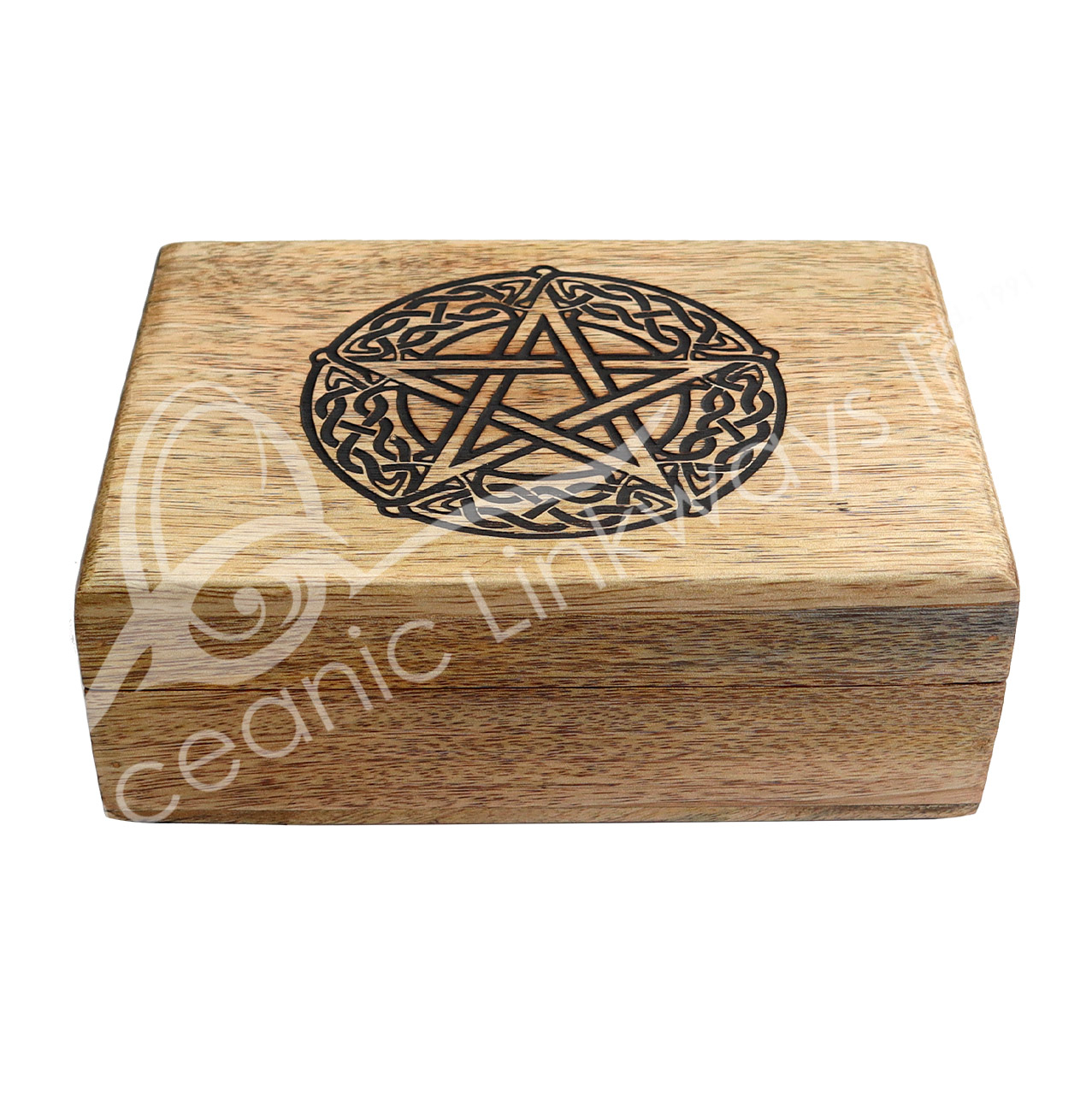 BOX – ACACIA WOOD LASER ENGRAVED PENTACLE 5 X 7″