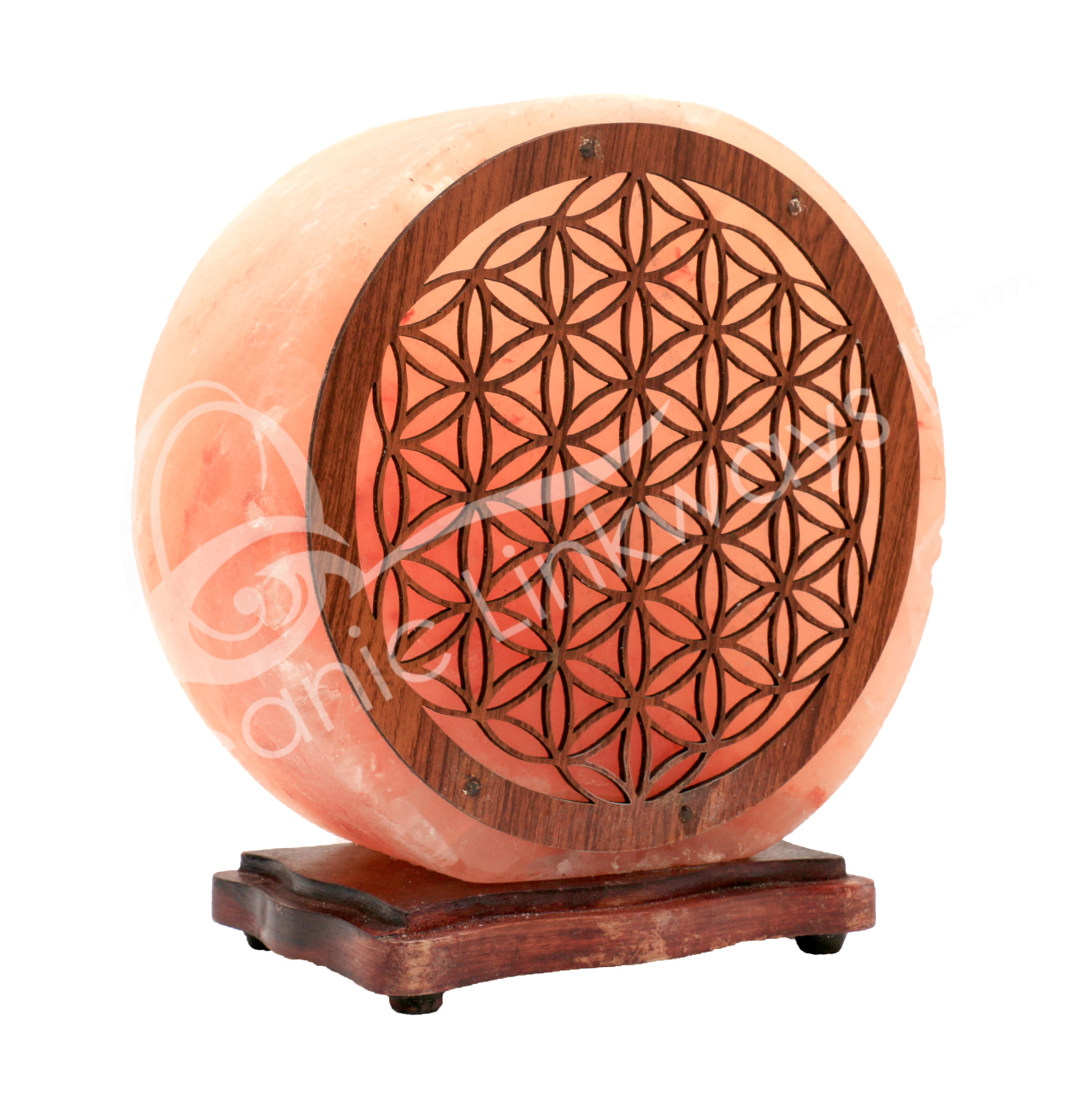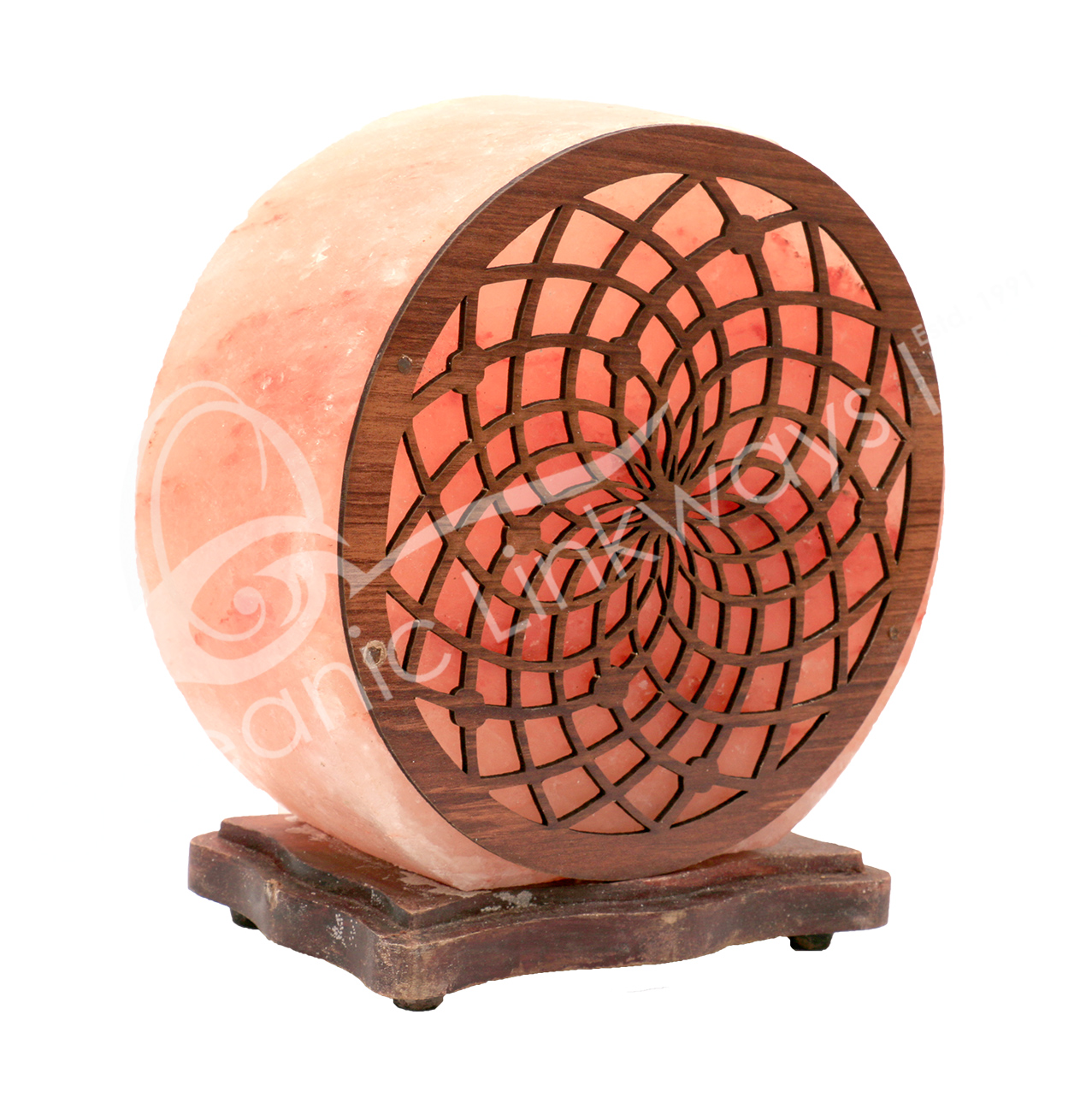 (CLOSE OUT) SALT LAMP – WOOD FLOWER OF LIFE NO CORD 8.25″H