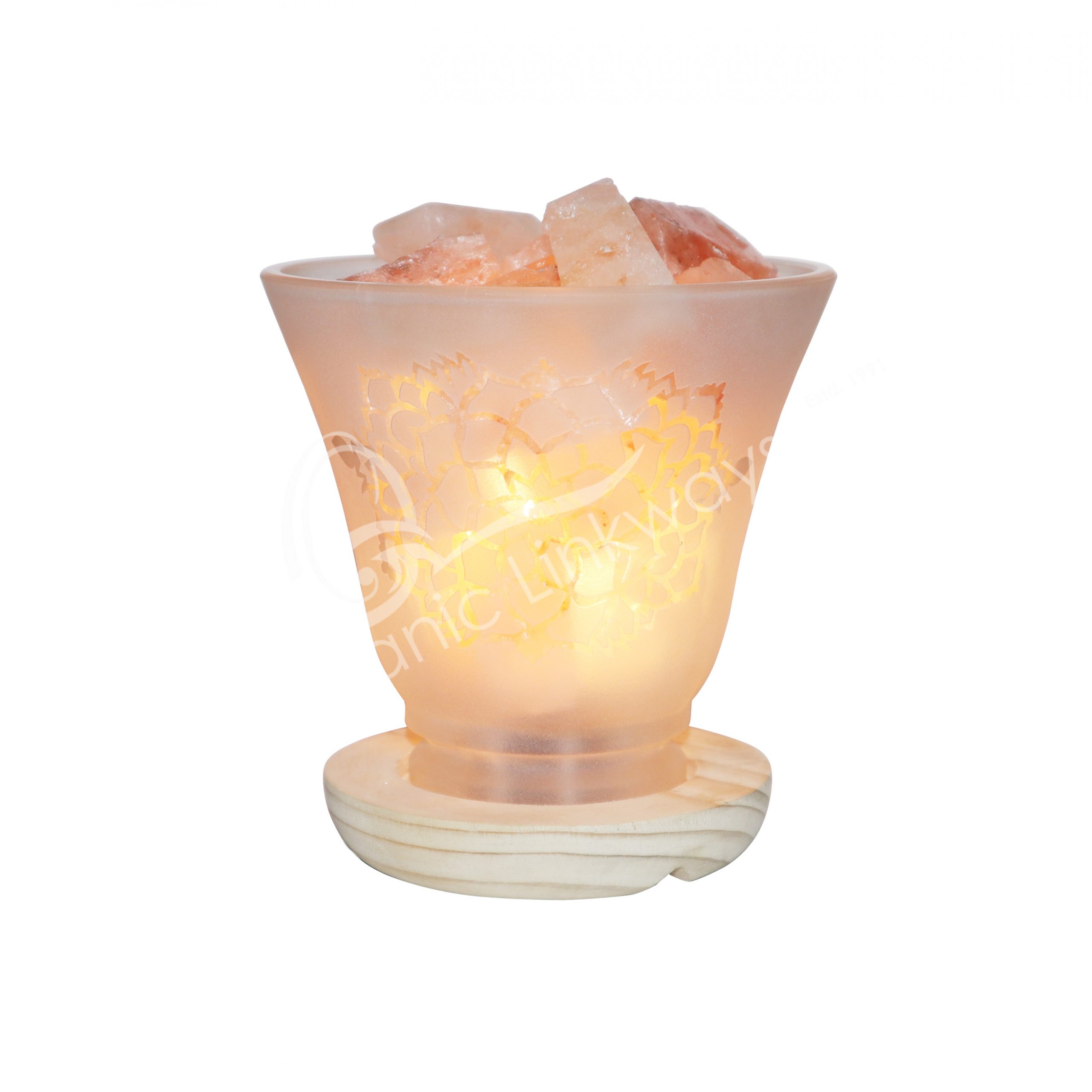 LAMP – SALT CHUNKS IN FROSTED GLASS WITH LOTUS NO CORD 4.75-5″H