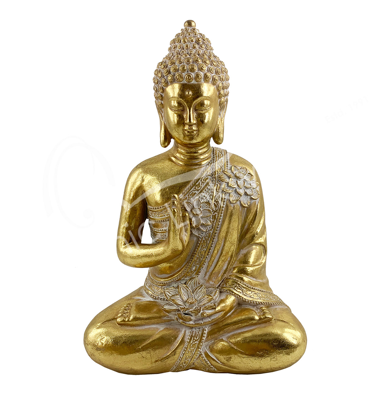 STATUE – BUDDHA, GOLD MEDITATING WITH OPEN HANDS 4.30″L X 6.30″H