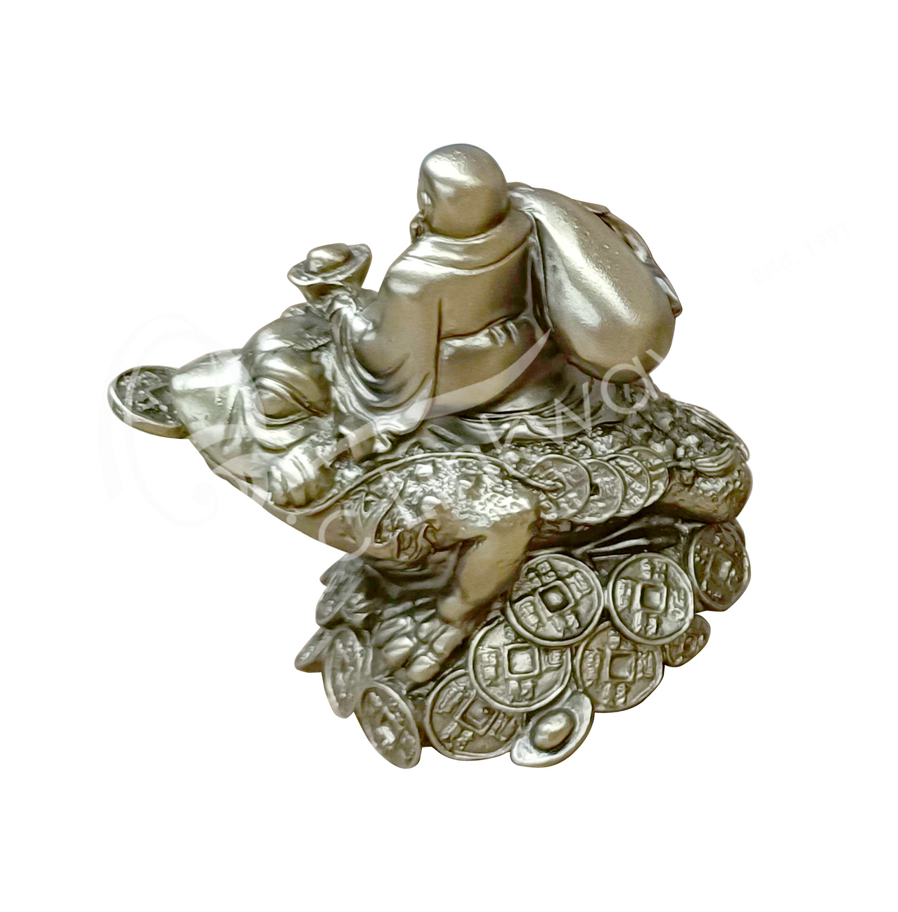 STATUE – HAPPY BUDDHA, GOLD WITH TURTLE 4.70″L X 4.75″H