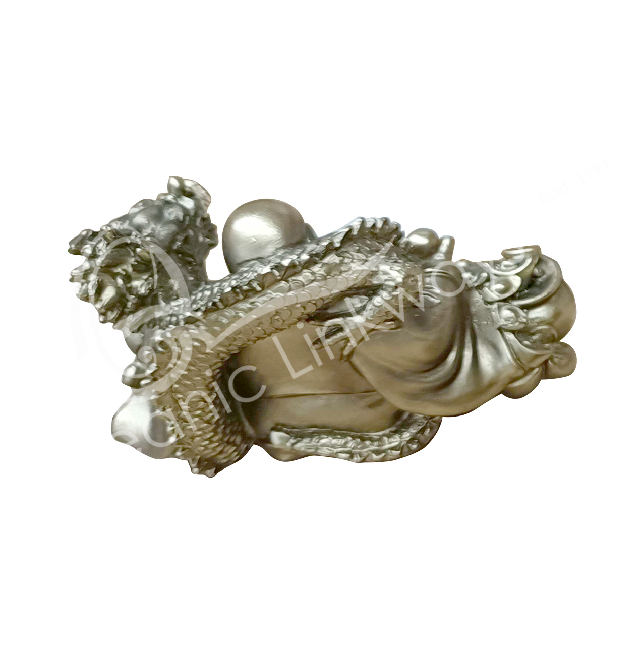 STATUE – HAPPY BUDDHA, GOLD WITH DRAGON 4″L X 2.50″H