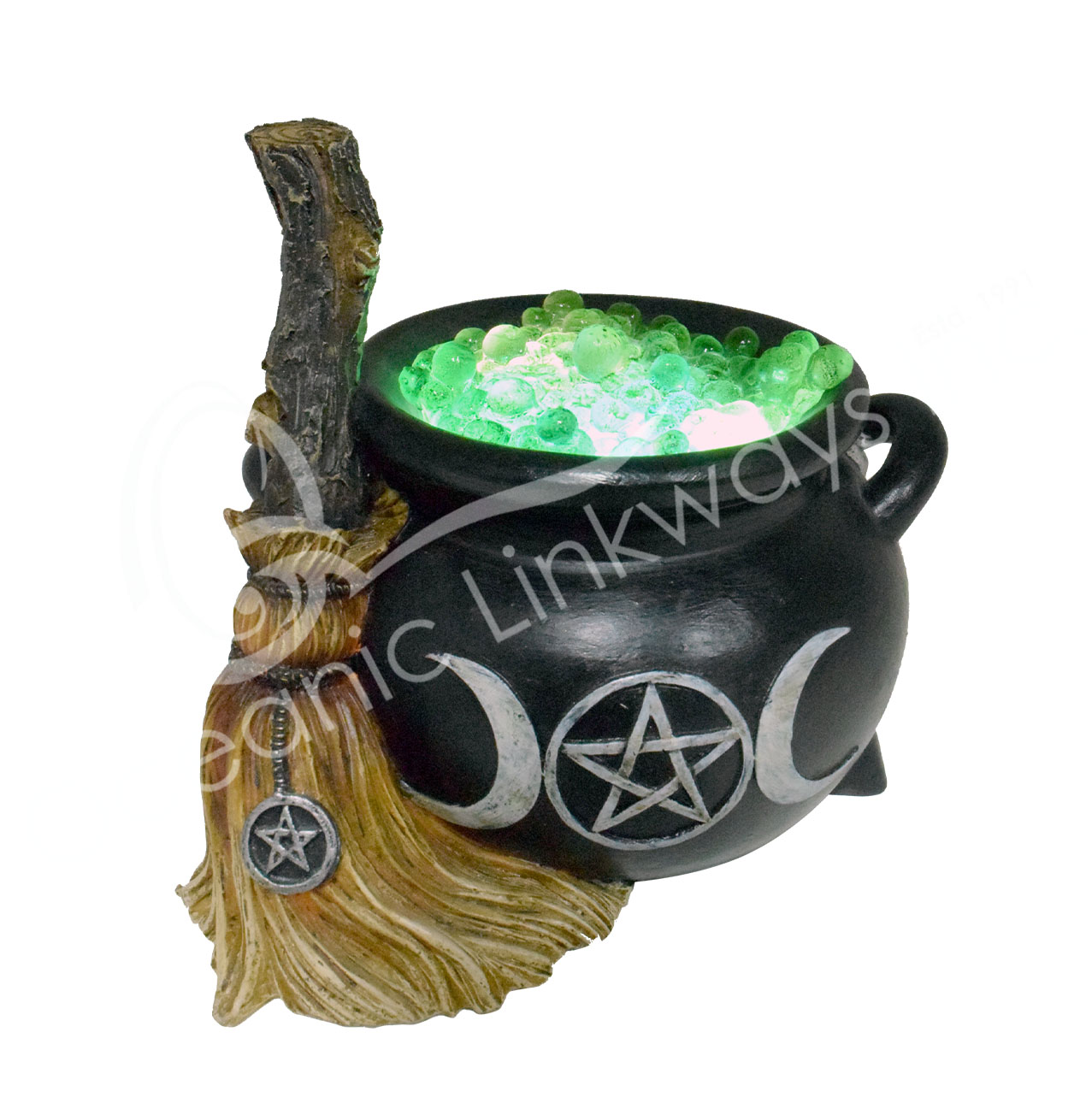 STATUE – LED LIGHT CAULDRON WITH BROOM 5.70″L X 4.3″W X 4.5″H