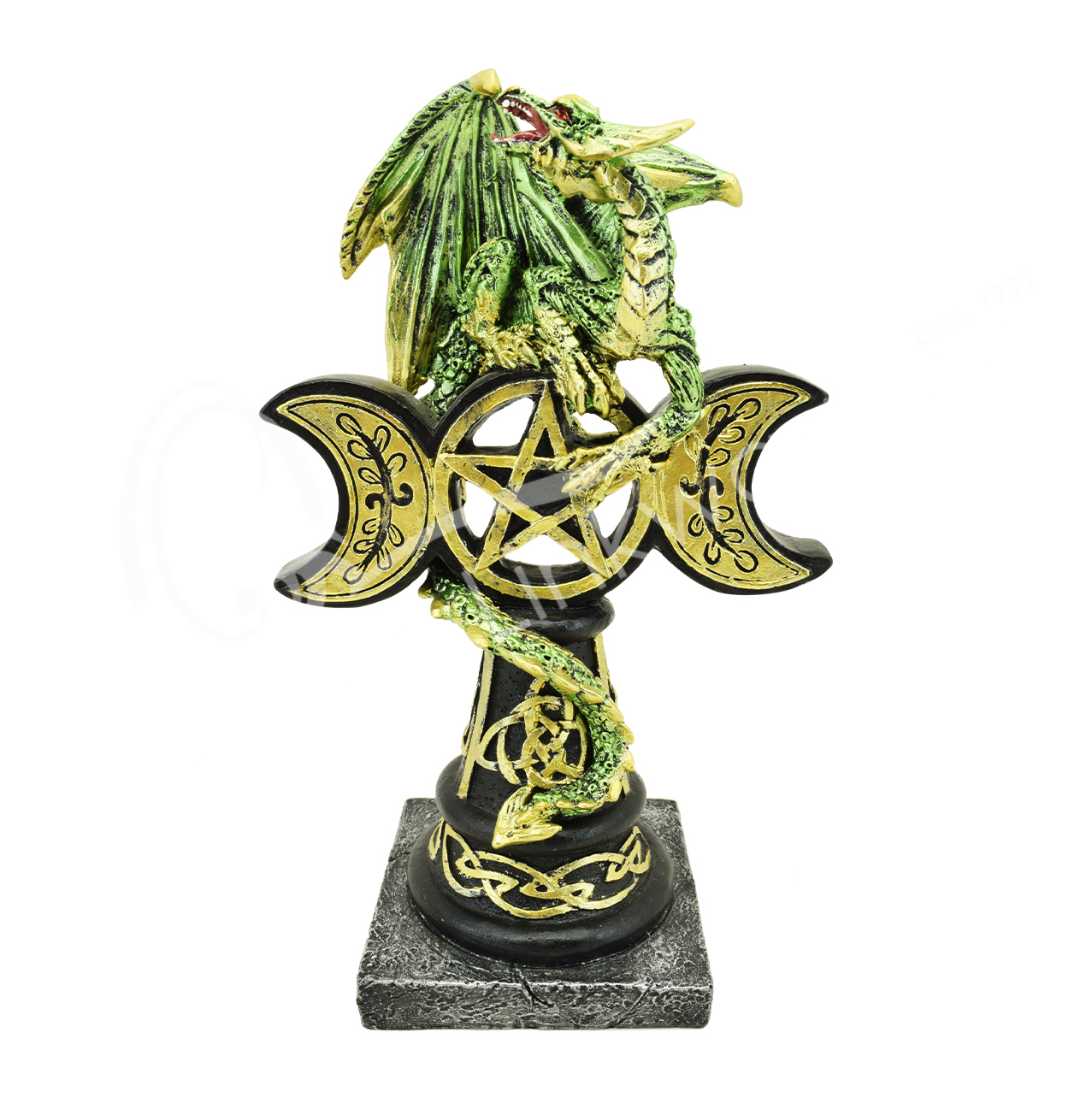 STATUE – DRAGON ON TRIPLE MOON PENTACLE BLUE 4.60″L X 2.95″W X 7.20″H