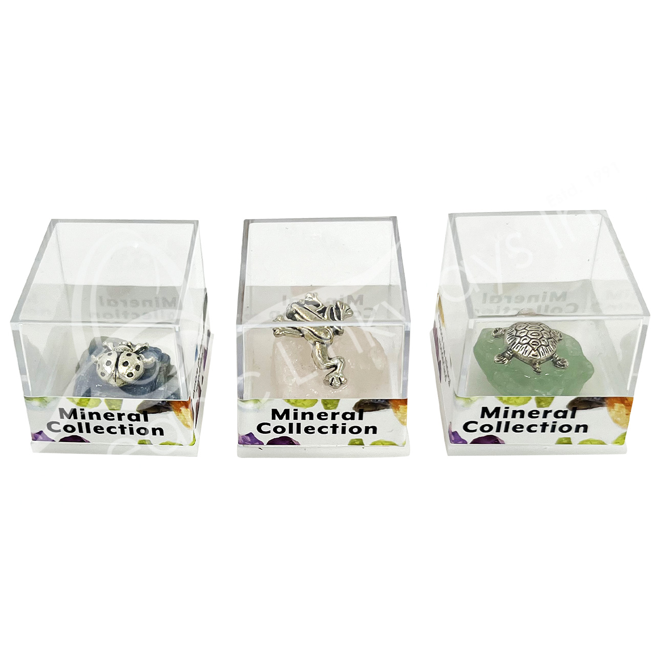 FIGURINE – ANIMALS ON STONE IN ACRYLIC BOX POP-UP DISPLAY (SET OF 60) 8.25 X 8″