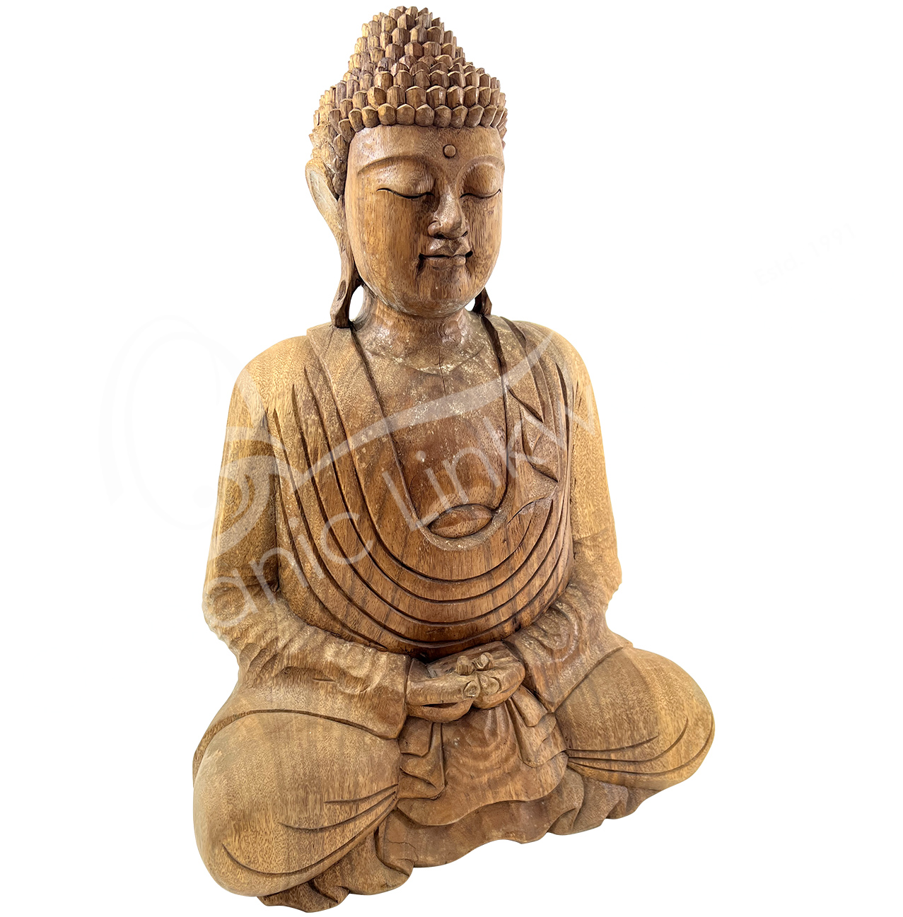 (CLOSE OUT) STATUE – WOOD MEDITATION BUDDHA 20-21″H X 13-14″W