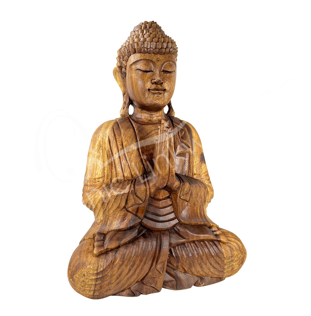 (CLOSE OUT) STATUE – WOOD PRAYING BUDDHA 20-21″H X 13-14″W
